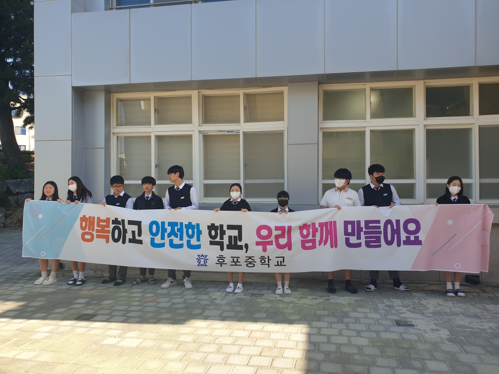 □ 후포중학교(교장 허염)는 2023. 4. 19.(수) 학생들과 교직원을 대상으로 후포중학교 후문에서 2023학년도 안전 주간(안전한 학교 만들기) 캠페인을 개최하였다.