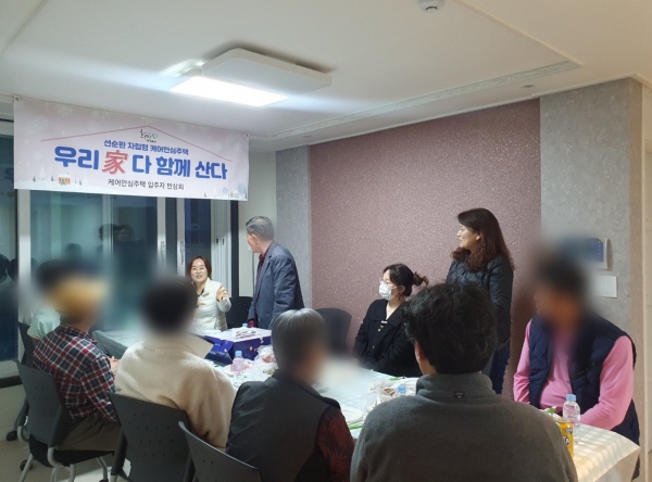 이번 반상회 및 환영식은 올해 처음으로 입주민 8명이 다함께 참석해 진행됐으며 입주민들은 신규입주자 환영과 더불어 생활의 어려움에 대한 개선방안에 대해 논의하고 케어안심주택 내 문제 발생 및 도움 필요시 서로 도울 방법에 대해 고민하는 시간을 가지며 이웃 간의 정을 쌓았다.