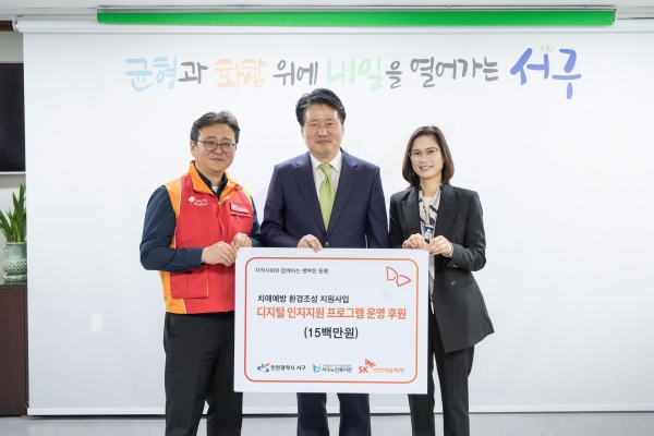 [금요저널] 인천 서구는 19일 SK인천석유화학가 치매예방을 위한 디지털 인지지원 프로그램 지원금 1천500만원을 전달했다고 밝혔다.