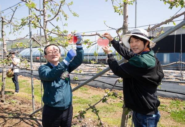 김덕현 군수와 최수종 이사장을 비롯한 내외빈은 테이프 커팅 등 개장식에 이어 체험농장과 사과나무, 분재교육장, 과학영농관을 둘러보는 시간을 가졌다.