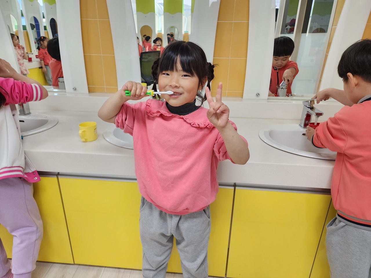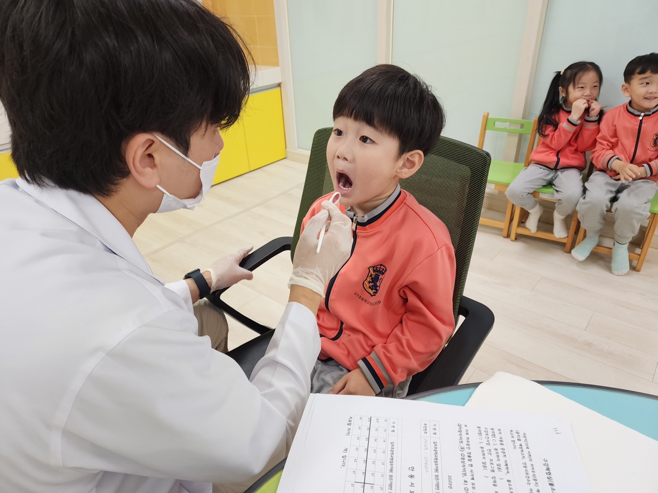 유아들은 치아의 중요성과 예방법을 익히고 치아구조에 대해 알아보며 직접 아이클레이를 통한 치아 모형 만들기를 통해 우리 몸에 관심을 가지고 건강 습관을 가지는 것의 중요함을 익힐 수 있었다. 이후 만 5세 유아들을 시작으로 구강검진 및 불소도포가 시작되었고 유아들은 씩씩하게 입을 벌리며 구강검진과 불소도포를 받았다.