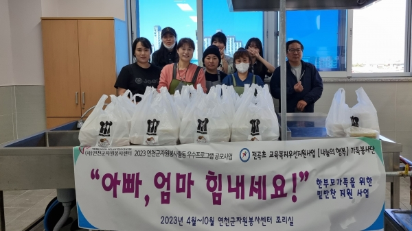 2023년 연천군 자원봉사활동 우수프로그램 공모사업으로 선정된 ‘아빠, 엄마 힘내세요’ 활동은 한부모가정에 밑반찬을 지원하기 위해 추진됐다.