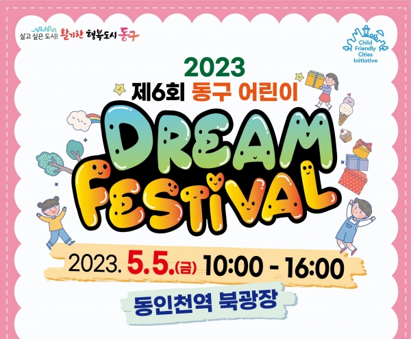 동구 어린이 Dream Festival은 제101회 어린이날을 맞아 ‘꿈을 주는 동구, 꿈을 꾸는 아동’이라는 슬로건으로 개최된다.
