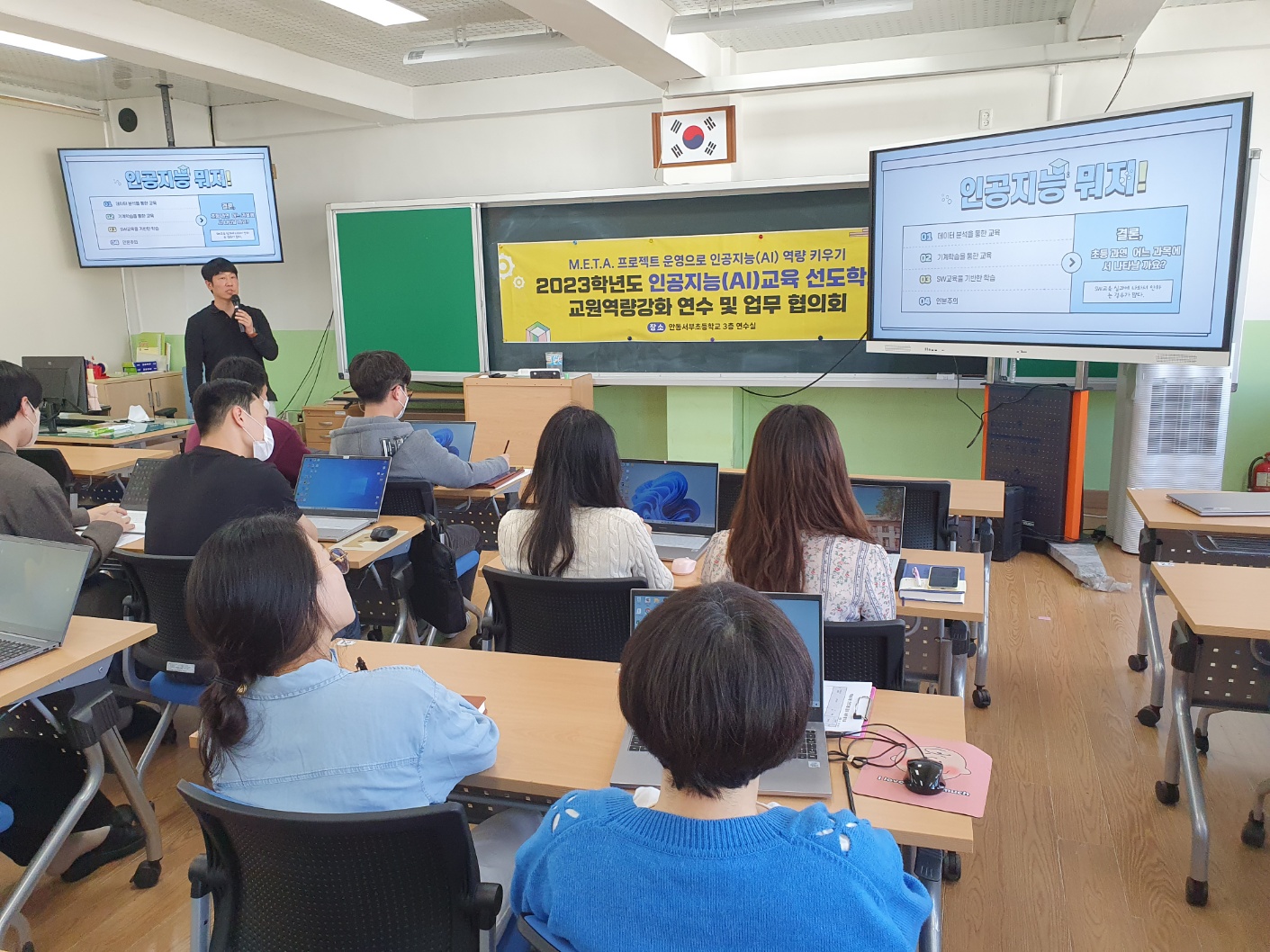 안동시 안동서부초등학교(교장 김의식)은 4월 19일(수) 서선초등학교 윤○복 교사를 초청하여 본교 교원을 대상으로 인공지능(AI)교육 선도학교 운영을 위한 교원역량 강화 연수(컨설팅)를 실시하였다.