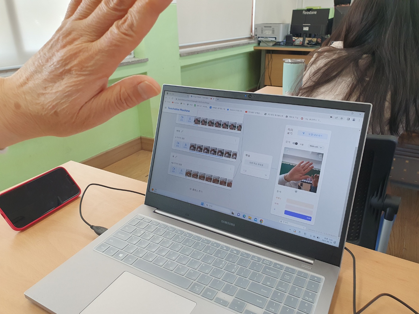 이어서 둘째 시간에는 인공지능(AI)을 직접 체험하기 위해 스크루블리와 티처블머신, 엔트리 프로그램 등을 활용한 머신러닝을 실습하였다.