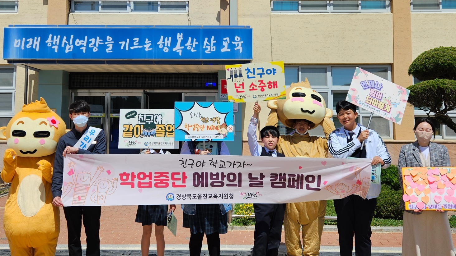 □ 죽변중학교(교장 박상수)는 2023년 4월 19일(수) 점심시간에 울진 Wee센터와 연계하여 전교생을 대상으로 ‘학업중단 예방의 날’ 캠페인을 실시하였다.