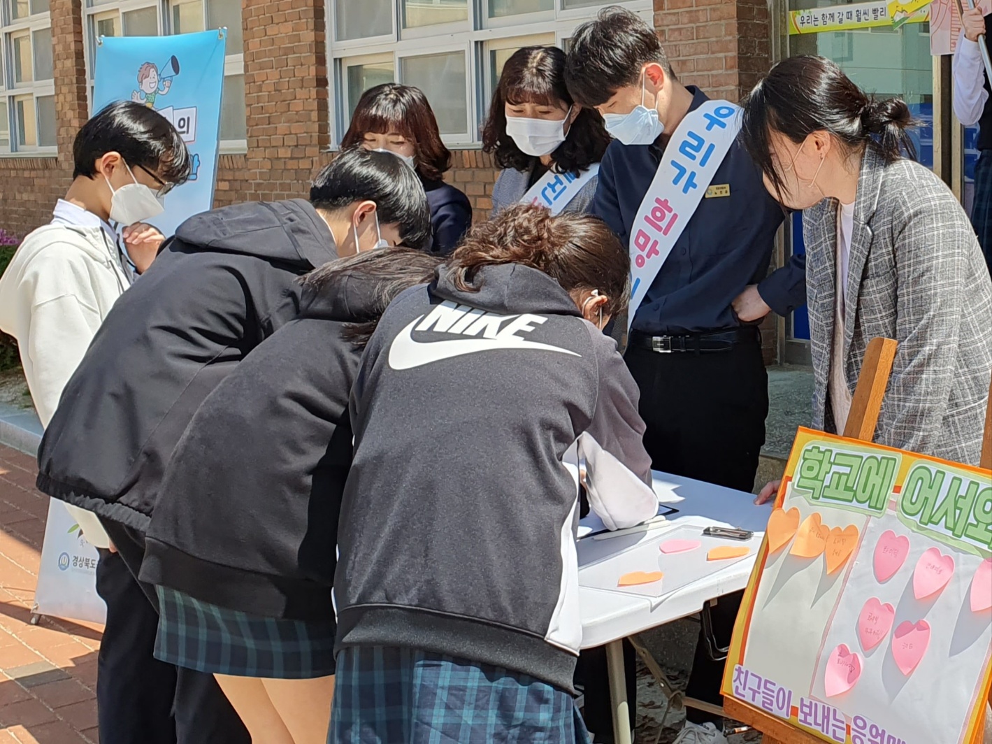 이날 진행된 학업중단 예방의 날 캠페인은 또래 상담 도우미와 함께 학업중단 예방 서명식과 “친구야 같이 졸업하자”, “즐거운 학교생활 학업 중단 NONO”, “친구야 넌 소중해”, “언제나 힘이 되어줄게”라고 적힌 피켓들을 들고 응원함으로써 학생들에게 지지와 도움의 손길을 제공하는 귀중한 시간이 되었다. 또한, “학교에 어서 와” 응원 메시지 교류 활동을 통해 사제 간뿐만 아니라 또래 학생들 간의 교류를 증진하여 유대감을 형성하는 기회를 가졌다.