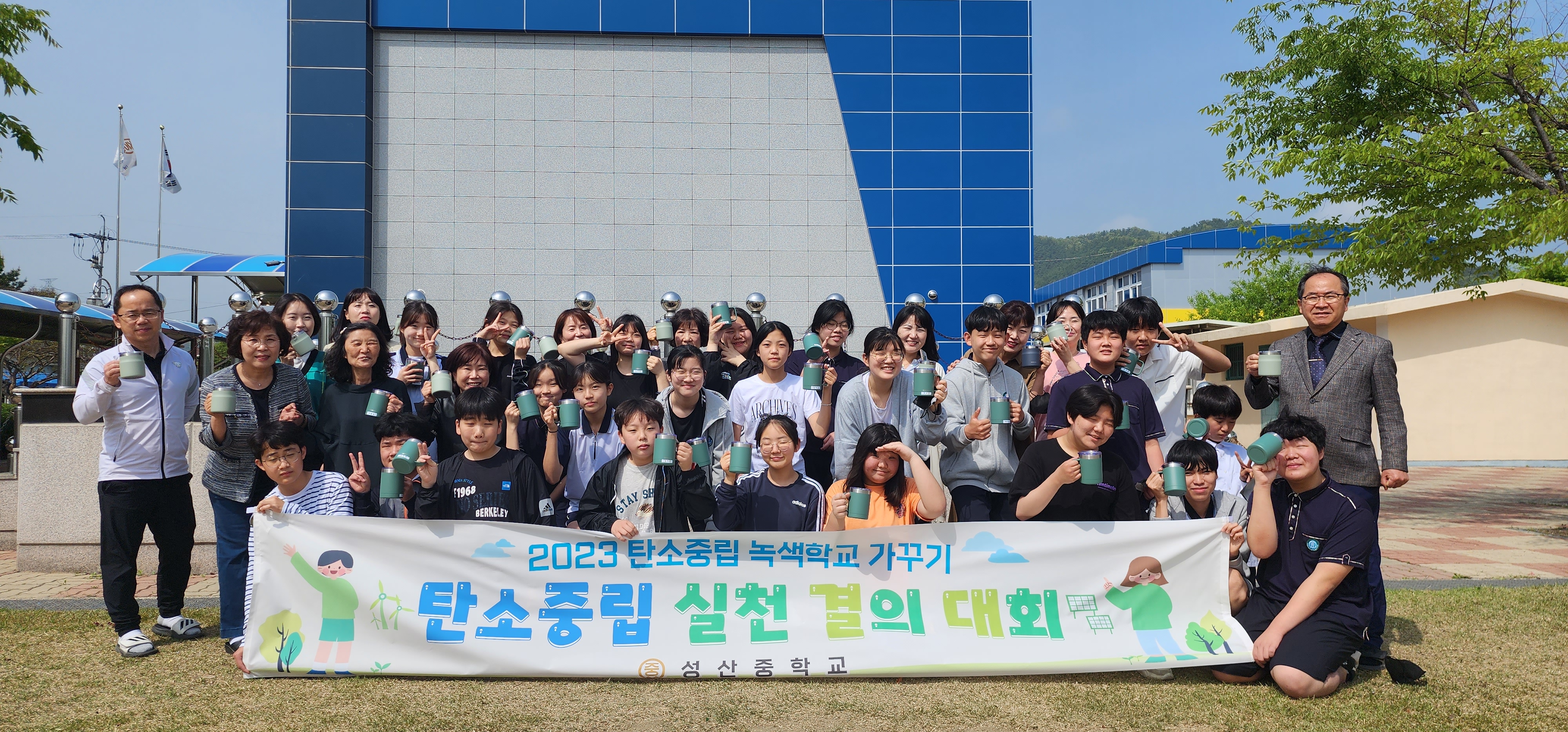 □ 성산중학교(교장 이성희)는 4월 19일(수) 체육관에서 탄소중립 실천 문화 정착을 위한 결의 대회를 실시하였다.