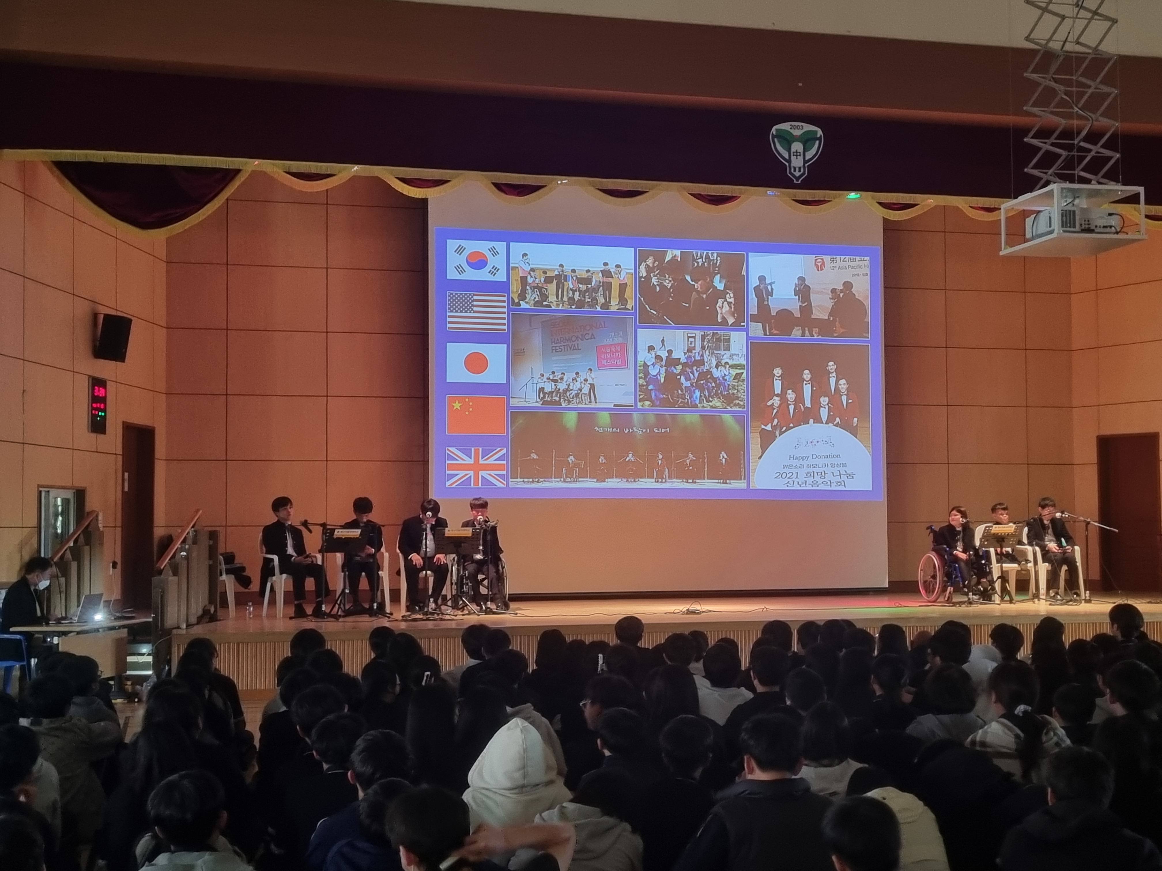 2학년 김○○학생은 “장애인 공연을 처음 보았는데, 다양한 하모니카가 아름다운 선율로 연주하는 모습이 인상적이었다. 누구든지 자신이 좋아하는 분야에서 최선을 다하면 최고가 될 수 있다는 점을 깨달았다. 오늘 공연은 제 가치관의 전환점이 된 것 같다.”라며 소감을 전했다.