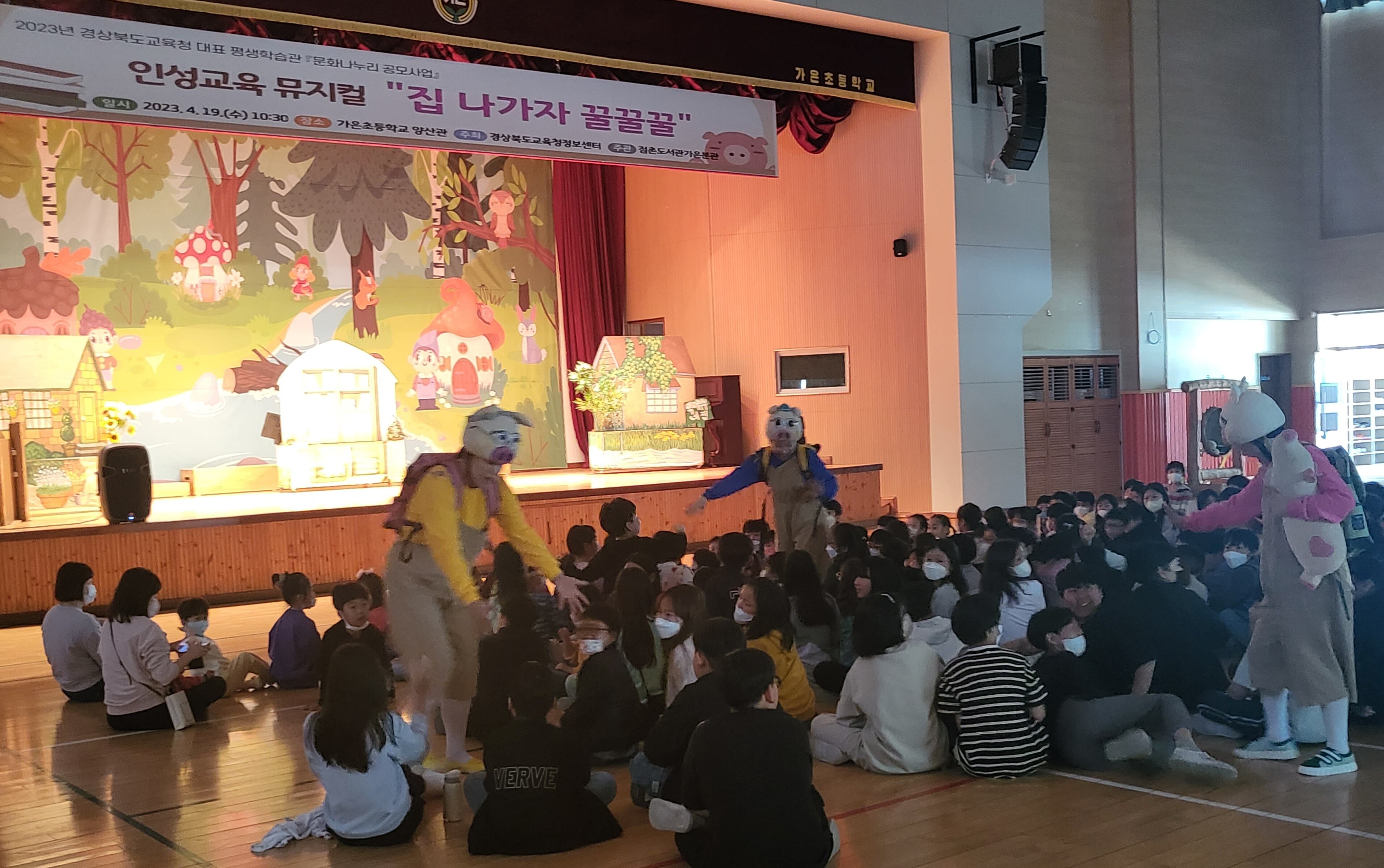 □ 경상북도교육청 점촌도서관가은분관(관장 전만옥)은 4월 19일(수) 가은초등학교 양산관에서 가은초등학교 및 농암초등학교 유치원생과 초등학생 135명을 대상으로 문화나누리 공모사업 뮤지컬 ‘집 나가자 꿀꿀꿀’ 공연을 운영하였다.
