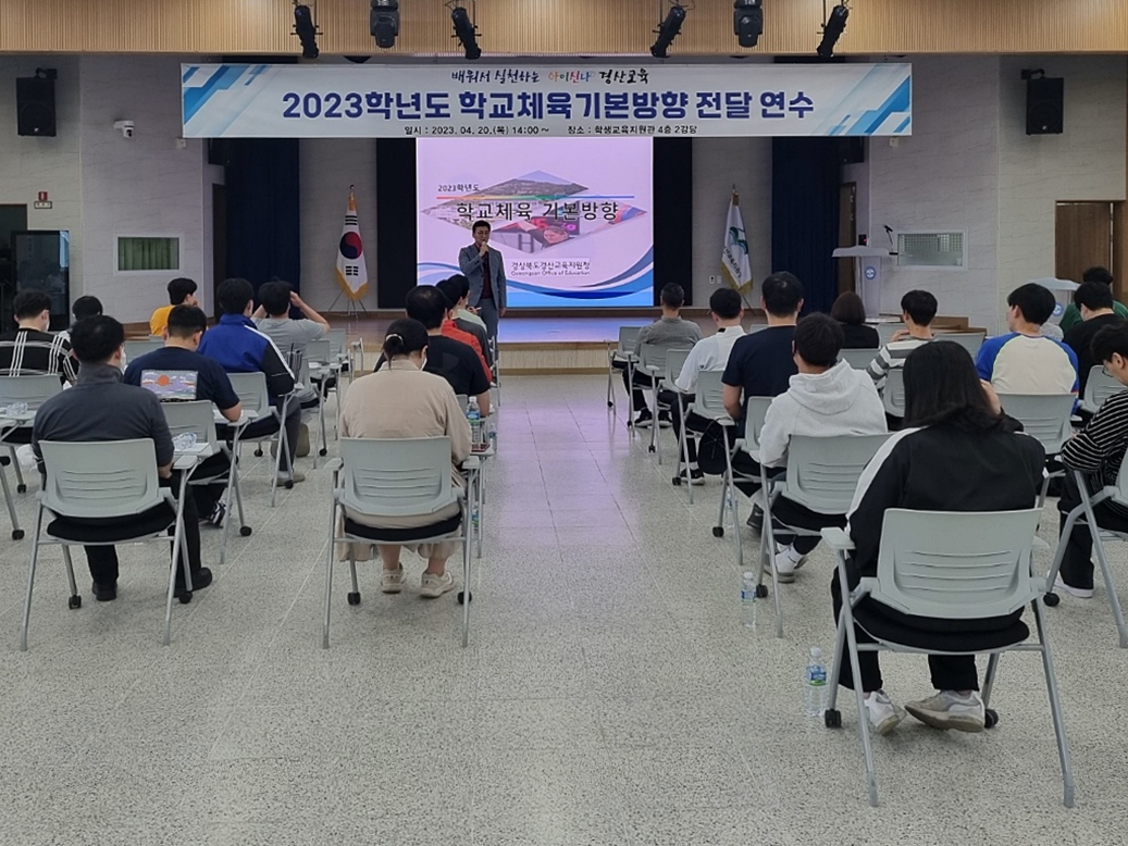 □ 경산교육지원청(이양균 교육장)은 4월 20일(목) 14시 경산교육지원청 학생교육지원관 4층 강당에서 관내 초·중·고·특수학교 체육업무 담당교사 50여명을 대상으로 2023학년도 학교체육기본방향 전달 연수를 개최하였다.