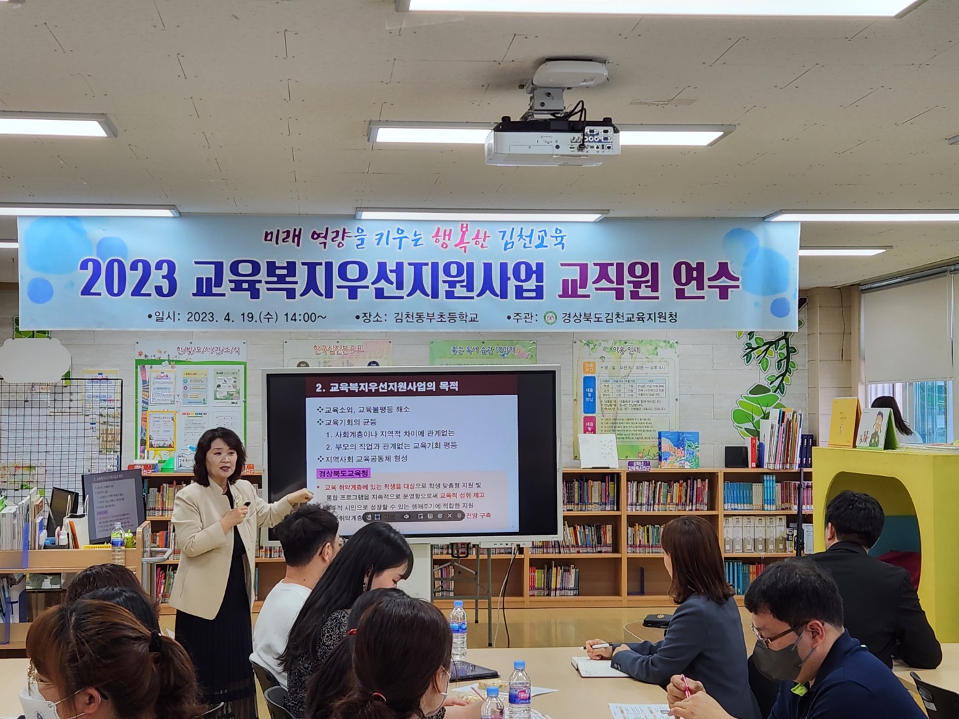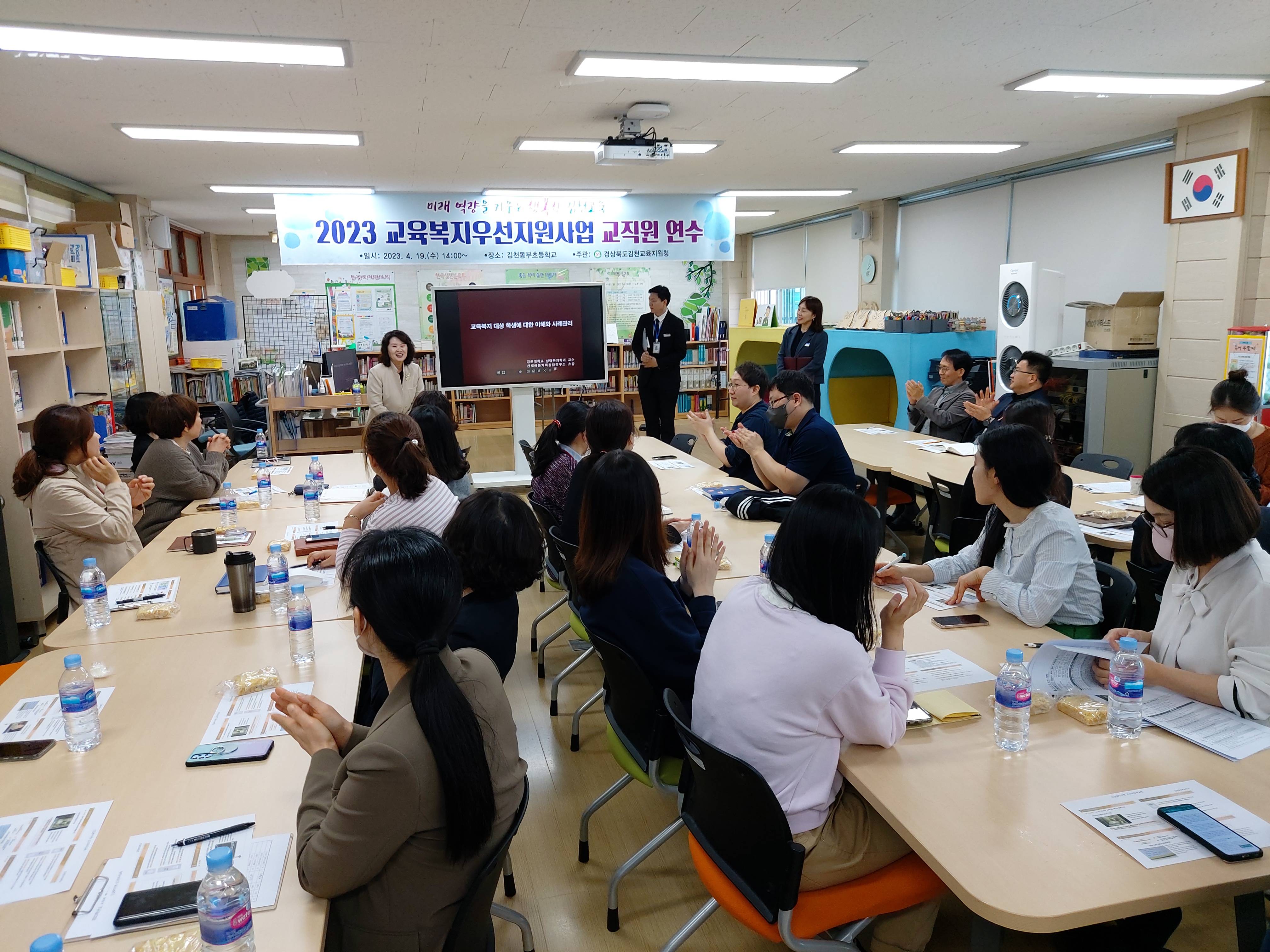 □ 김천동부초등학교(교장 문대동)는 4월 19일 오후 2시부터 본교 도서관에서 교육복지우선지원사업의 이해 및 사례관리의 중요성과 방법을 주제로 하여 전 교직원 연수를 실시하였다.