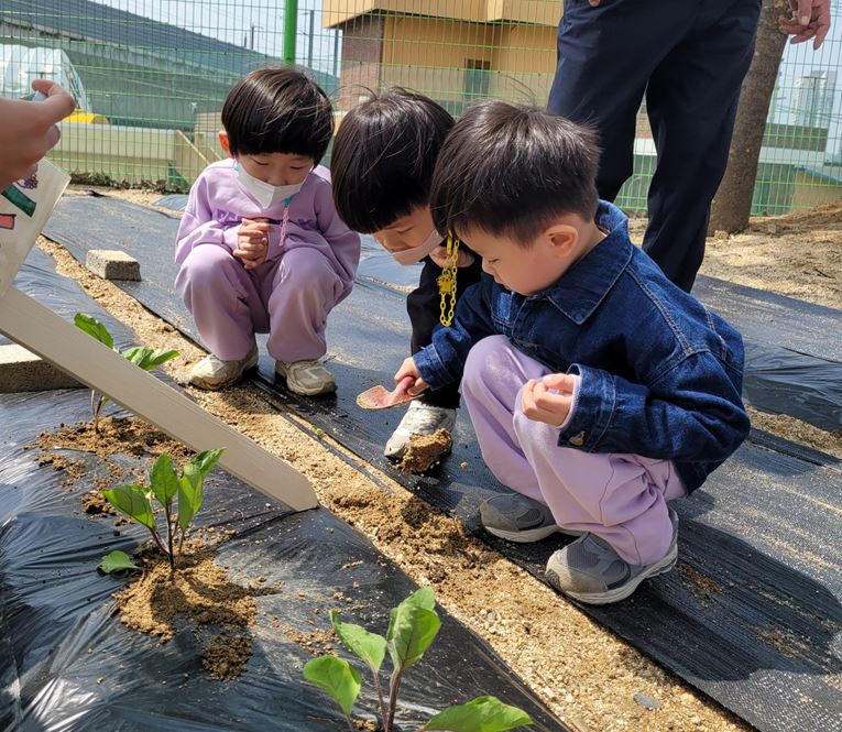 □ 모종 심기에 참여한 새론반 박○○은 “선생님, 친구들과 함께 심은 방울토마토를 잘 길러 가족들과 나누어 먹고 싶어요.”라고 말했으며 가온반 윤○○은 “오이가 빨리 열리면 오이 마사지 놀이하고 싶어요.”라며 수확할 작물에 대한 기대감을 보였다.
