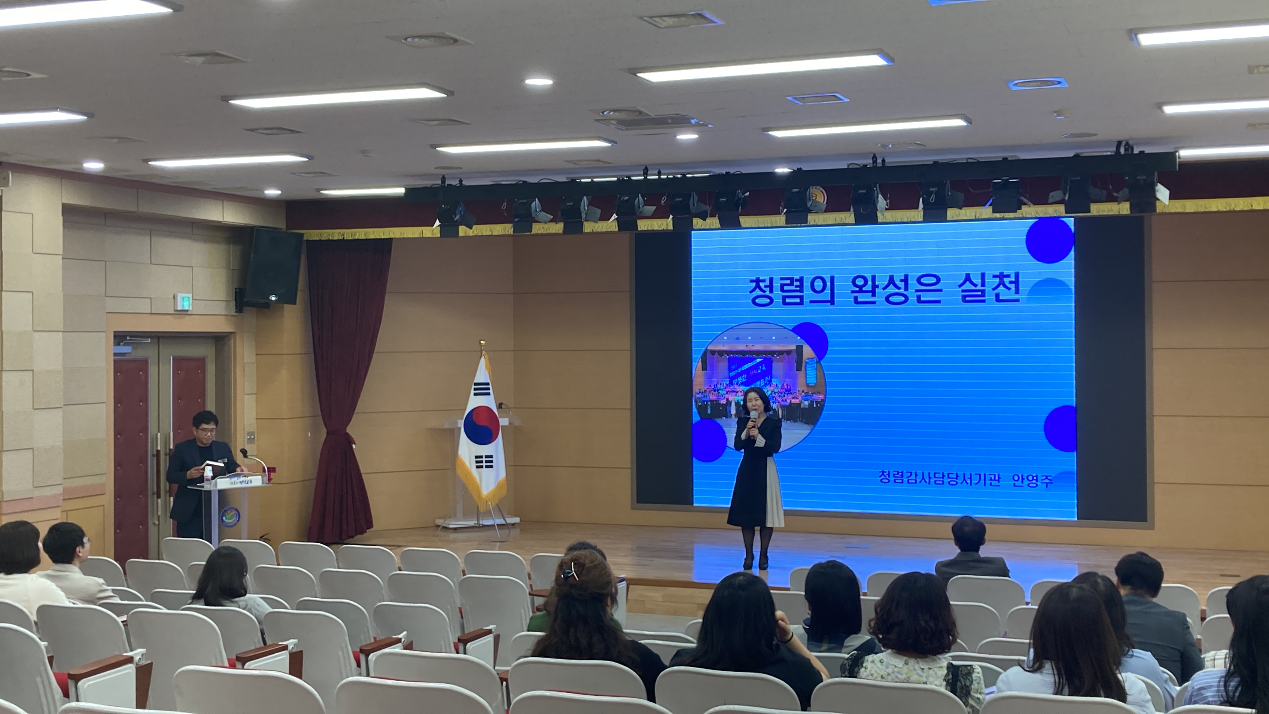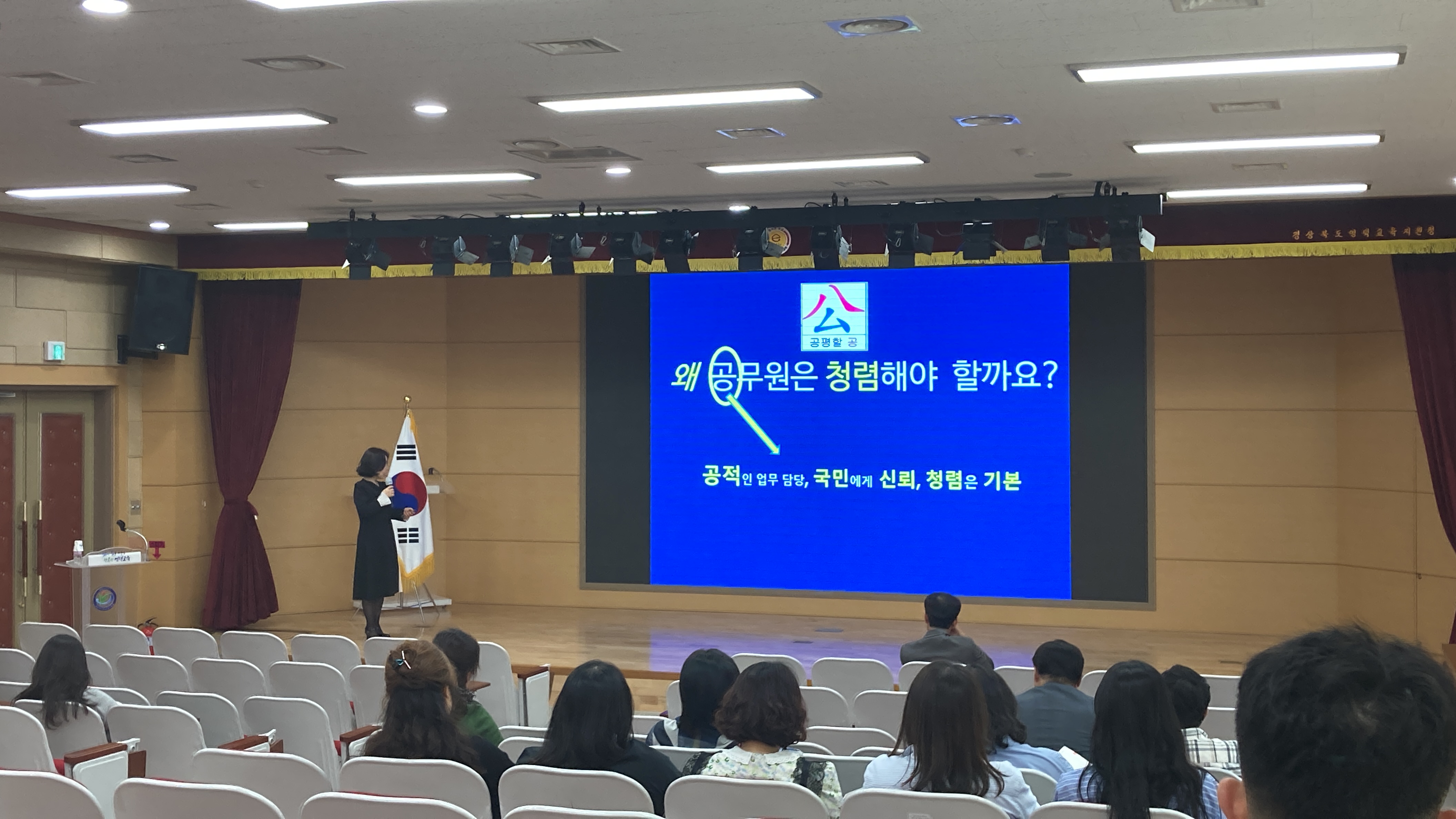□ 이날 청렴강사로 초청된 경상북도교육청 안영주 청렴감사담당 서기관은 공무원행동강령, 청탁금지법, 이해충돌방지법 등에 대하여 강연하였으며, 특히 경상북도교육청 청렴도 측정 결과를 분석하여 맞춤형 청렴교육을 제공하였다.