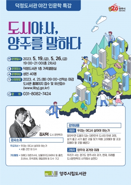 양주시 덕정도서관, 야간 인문학‘도시야사, 양주를 말하다’ 수강생 모집