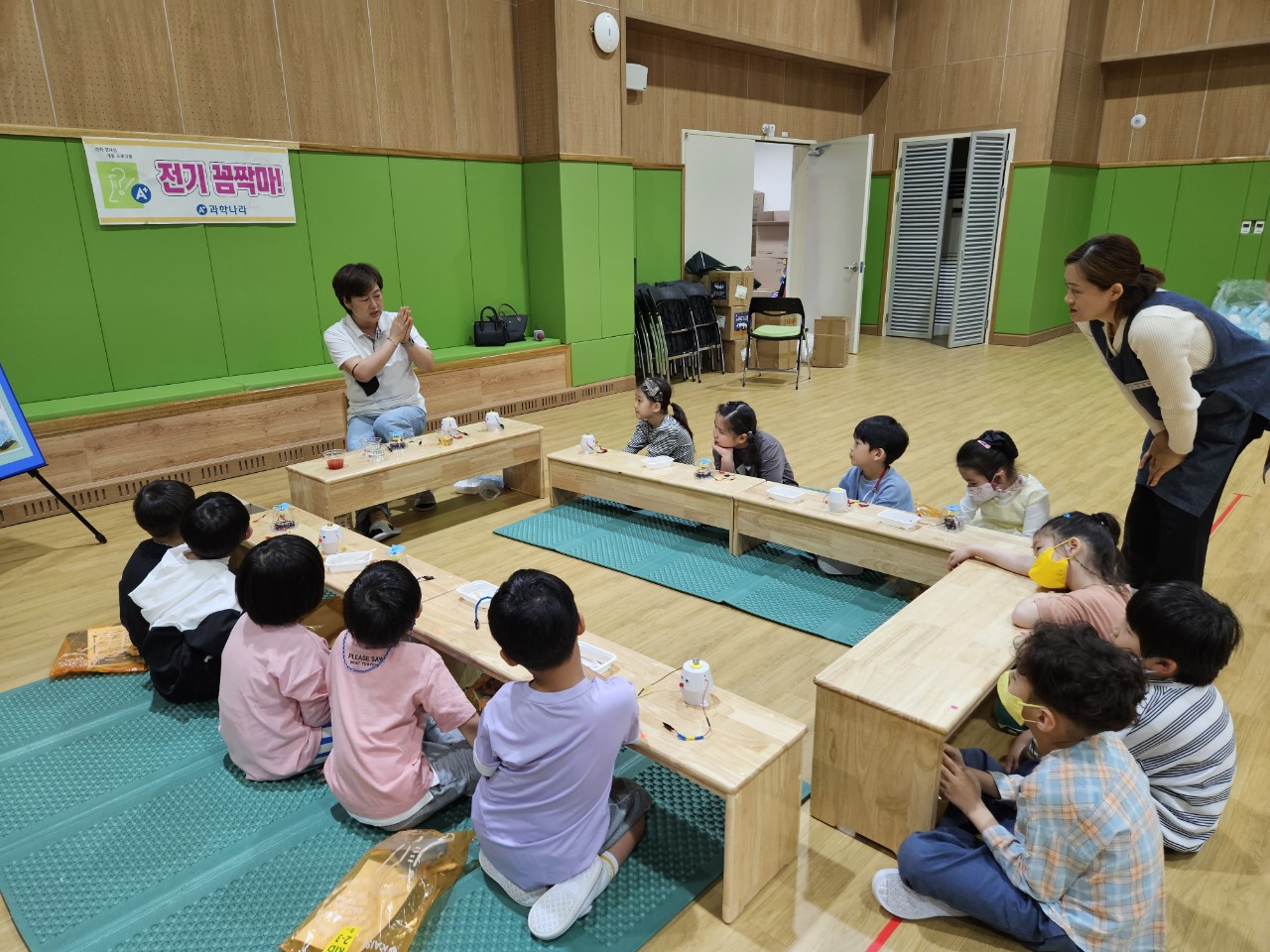당일 행사는 ‘하늘을 나는 구슬’,‘전기 꼼짝 마’,‘달려라 쥐돌이’,‘전기 미로’ 등 6가지 프로그램으로 진행하였다. 행사 시작 전 교사들은 안전한 체험활동을 위해 유아들에게 안전교육을 하고 다양한 자료제시를 통해 호기심을 자극하여 과학 놀이를 진행하였다. 유아들의 과학적 사고를 돕기 위해 실험 결과를 예측해보고 탐구과정에서 서로 다른 생각에 관심을 가져 볼 수 있도록 상호작용하였다.