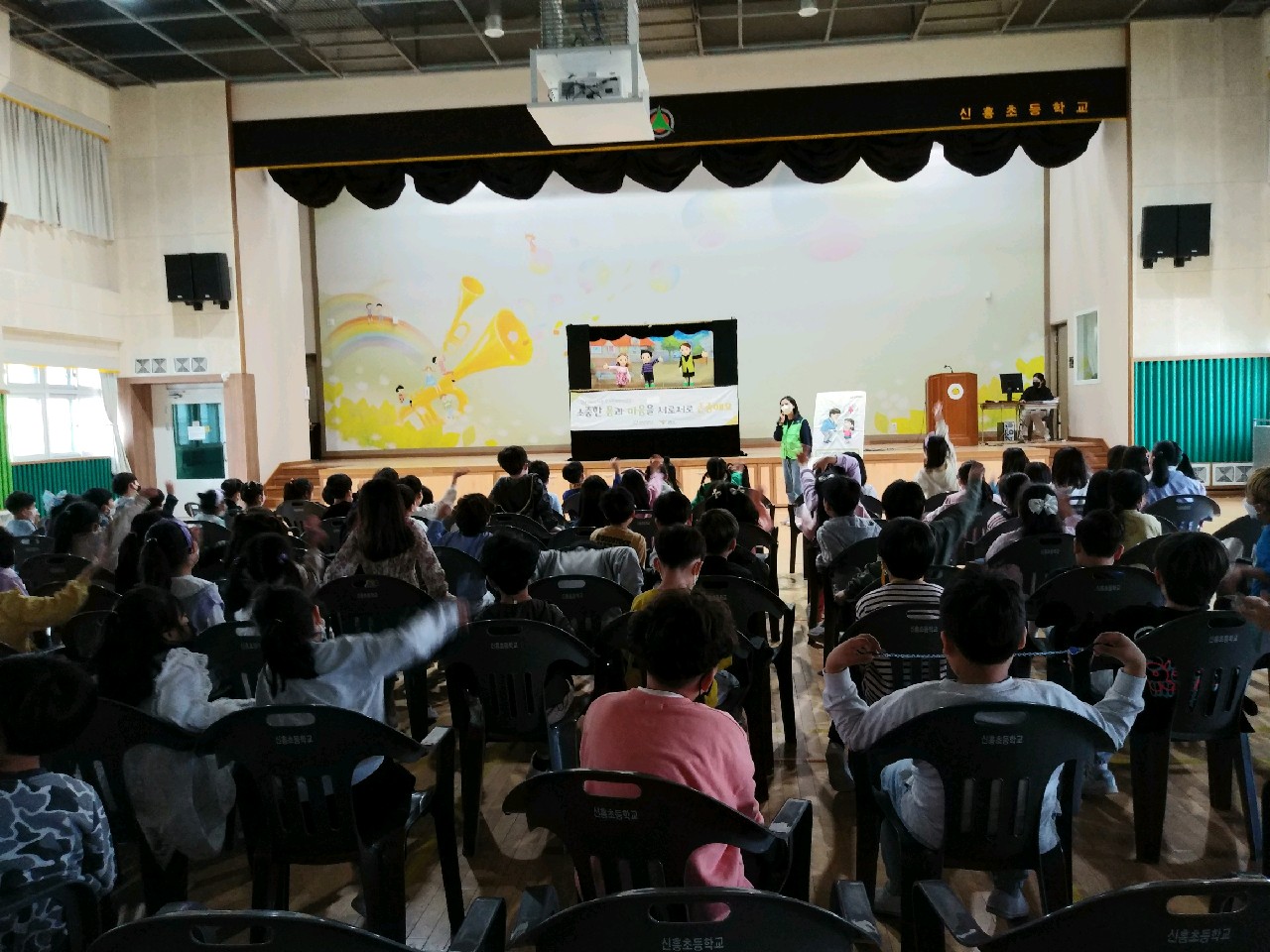 신흥초등학교(교장 김경숙)은 2023년 4월 21일 (수) 강당에서 1학년, 2학년 104명을 대상으로 성폭력 예방 인형극 교육을 실시했다. 이번 성폭력 예방 인형극 교육은 굿네이버스 경북 동부지부에서 학교를 방문하여 실시했다. 인형극 관람 중 성폭력 예방 관련 퀴즈로 학생들의 흥미도 높였다.