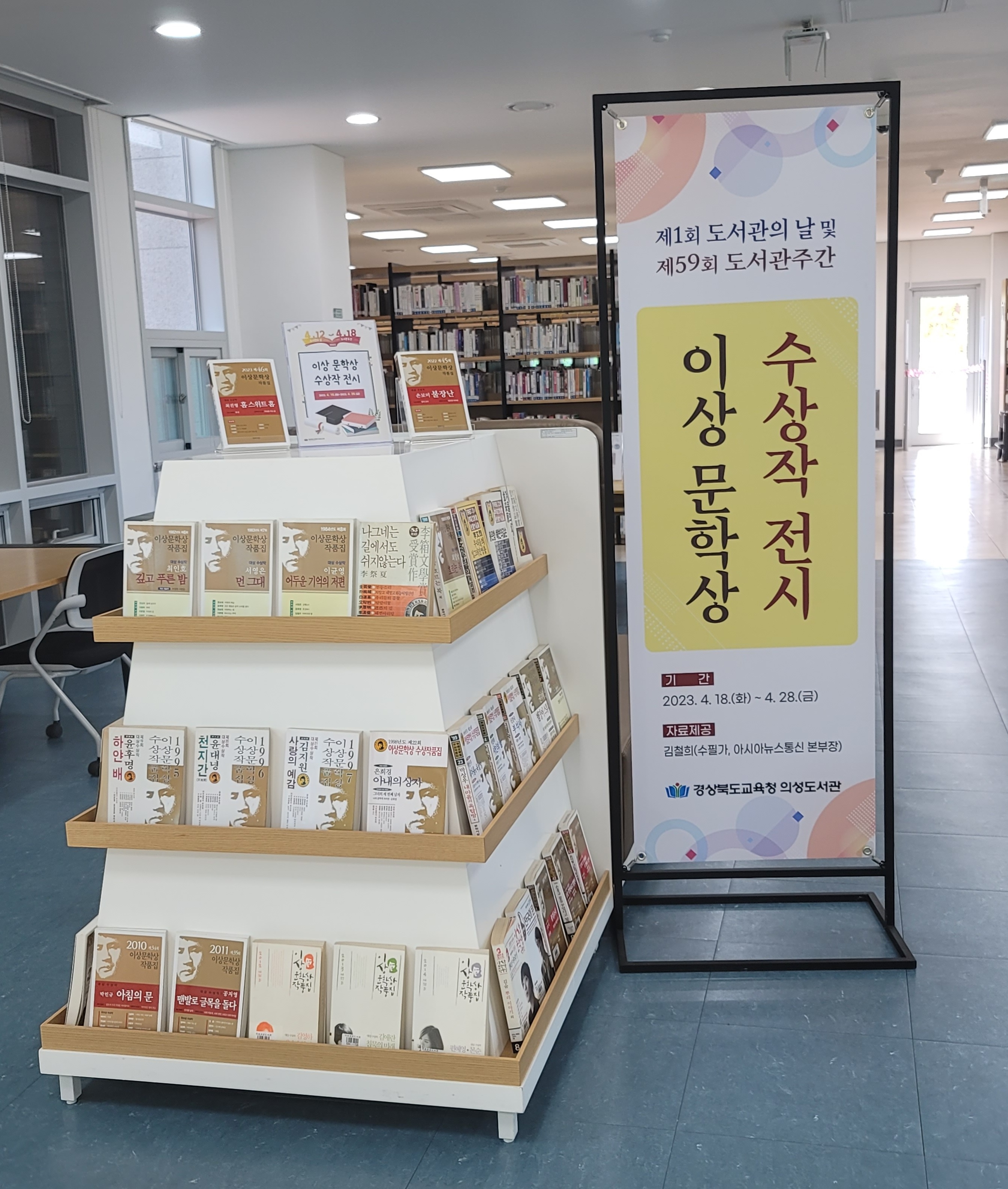 ⃞ 경상북도교육청 의성도서관(관장 임종화)은‘제1회 도서관의 날 및 제59회 도서관주간’을 맞이하여 4월 18일부터 28일까지 이상문학상 수상작 전시를 한다고 밝혔다.
