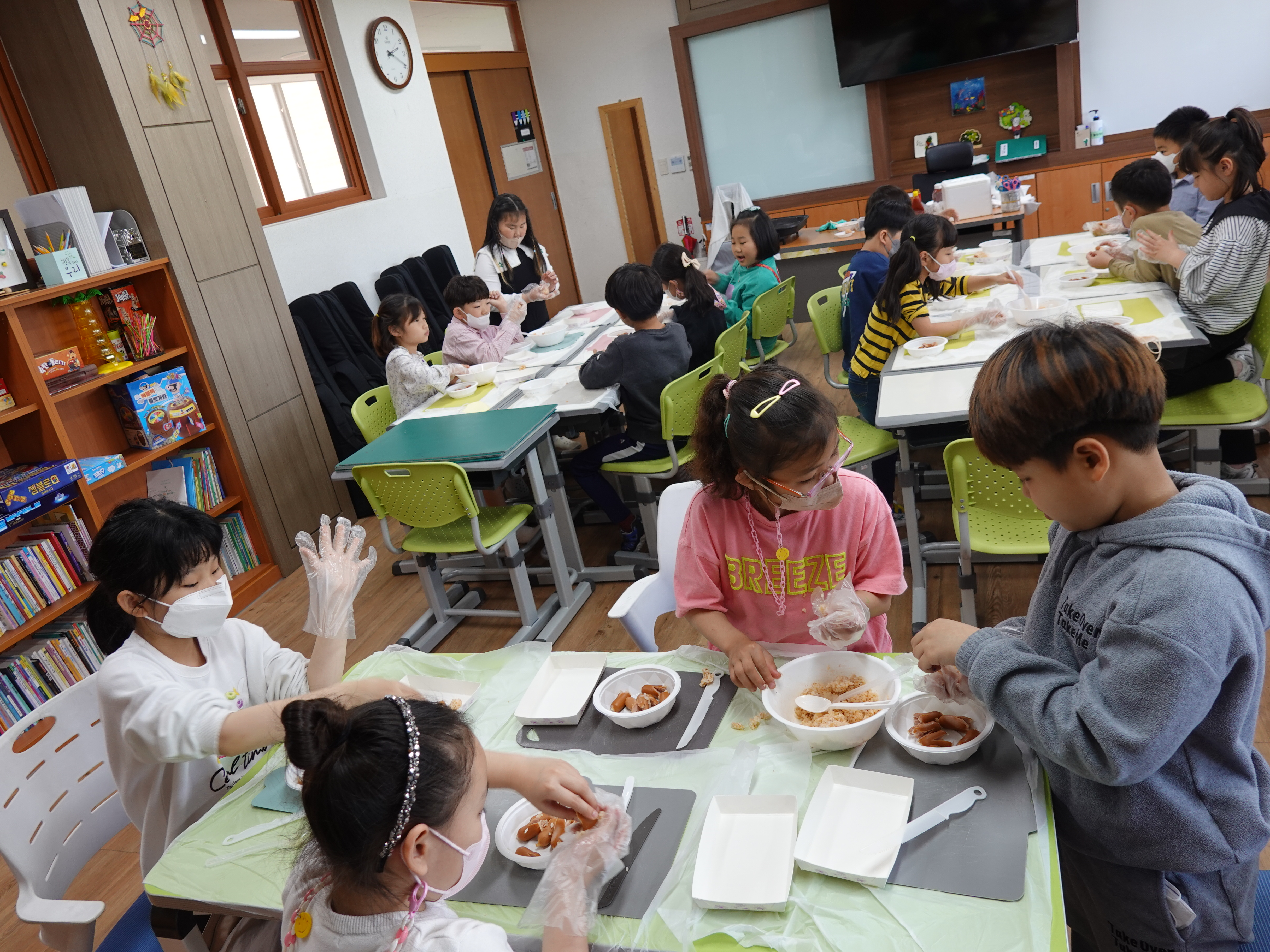 회기별 수업내용 주제는 총 10회기에 걸쳐 ‘괴물들의 저녁파티-핑거쿠키, 나는 빵점-페스트리 핫도그, 밀가루 학교-치킨 스낵 랩’ 등 다양한 이야기와 쿠킹 체험이 있다.