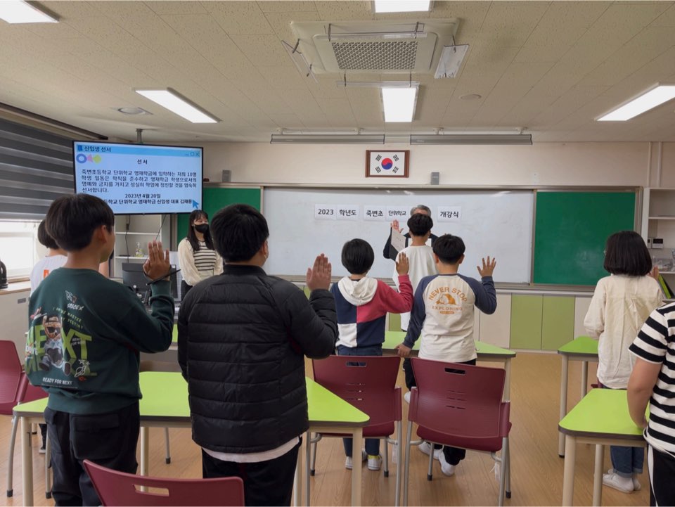 □ 죽변초등학교(교장 김정일)는 2023년 4월 20일(목) 본교 수학체험실에서 2023학년도 죽변초등학교 단위학교 영재학급 개강식을 개최하였다. 이날 개강식에는 죽변초 단위학교 영재학급에 선발된 학생 10명과 지도 강사를 비롯하여 약 17명이 참석하여 자리를 빛냈다.