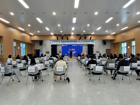 □ 경상북도경산교육지원청(교육장 이양균)은 2023년 4월 21일(금) 학생교육지원관 4층 대강당에서 관내 유, 초, 중, 고 및 특수학교 학교운영위원장 82명을 대상으로‘배워서 실천하는 아이신나 경산교육’실현을 위하여 2023년도 학교운영위원장 연수를 개최하였다.