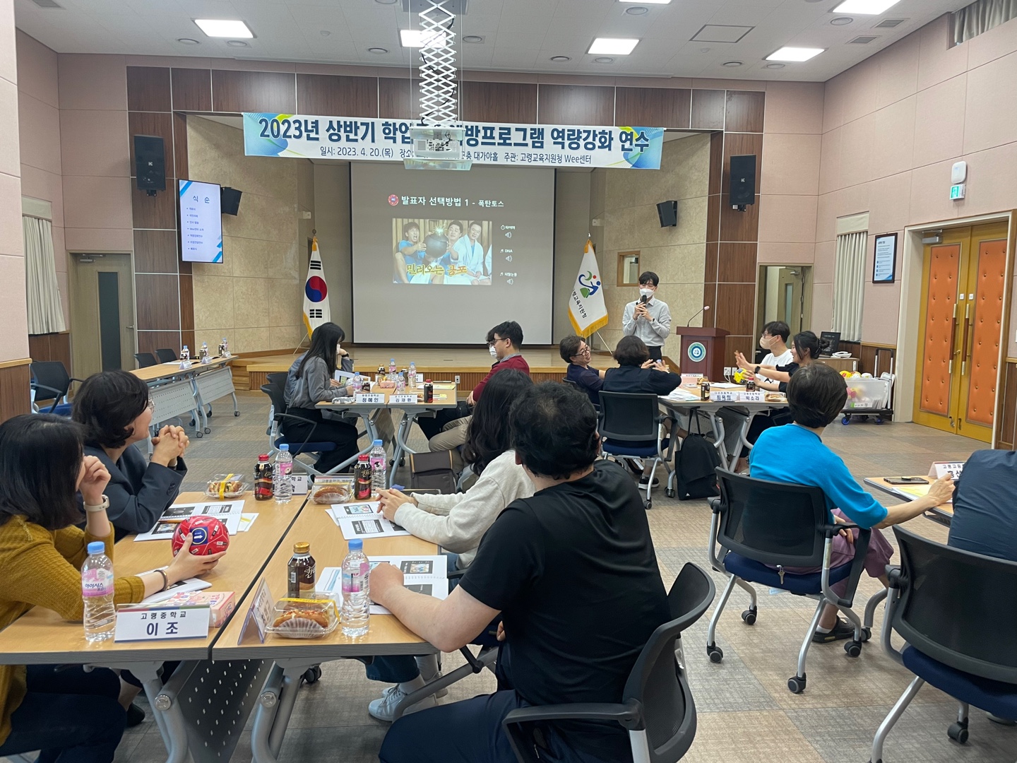 이번 연수에서는 구미초등학교 교사 신동영을 초빙하여 현장에서 필요한 학생과의 소통 능력을 향상시키기 위해 ‘토크볼(Talk-Ball)을 활용한 상담역량강화’라는 주제로 연수를 진행했다. 이와 더불어 학업중단숙려제 운영 지침을 전달하여 학업중단예방프로그램 운영 방법 및 단위학교에서 준수해야 할 사항 등에 대해 안내하였다.