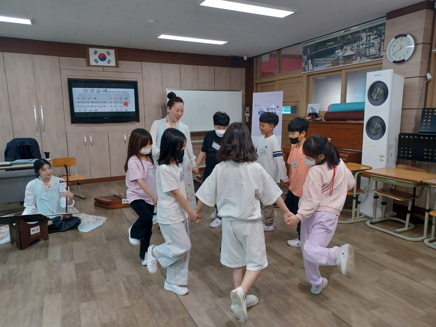 □ 국악전문 연주팀‘국악밴드 조은솔’(대표 정연희, 4명)이 학교에 방문하여 전교생에게 학년별로 1시간씩 교실음악회를 열어주었다. 1,2학년은 대문놀이, 3,4학년은 강강술래, 5,6학년은 산조와 정악을 주제로 하여 학년성에 맞는 내용으로 노래도 배우며 국악놀이도 즐길 수 있었다.