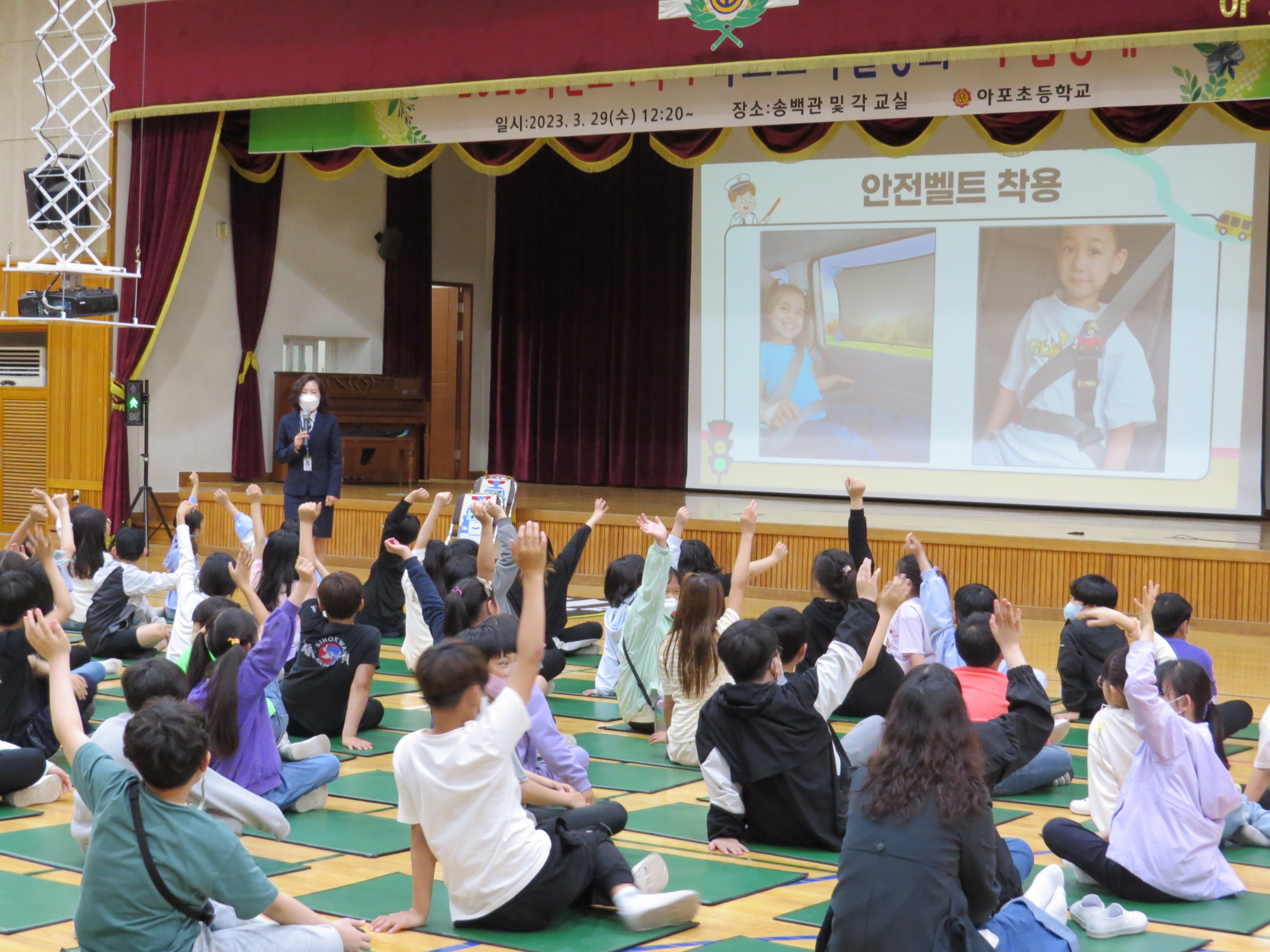 □ 아포초등학교(교장 김선국)는 4월 21일(금) 경상북도교통문화연수원과 연계하여 전교생을 대상으로 어린이 교통안전교육을 실시하였다.