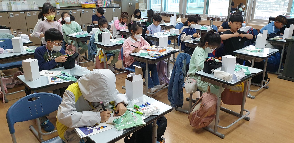 - 이번 교육 활동에서는 개인 텀블러 및 텀블러 가방을 직접 그리고 꾸미며 친구들과 함께 소통하고 이야기하는 시간을 가졌다.