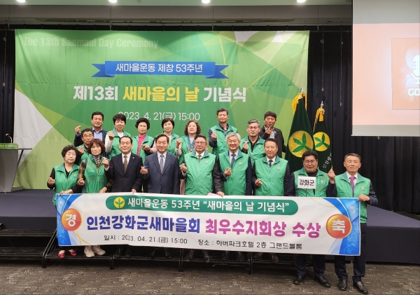 [금요저널] 강화군 새마을회는 지난 21일 인천 하버파크 호텔에서 열린 “인천시 제13회 새마을의 날 기념식” 행사에서 인천시 최우수지회상을 수상했다.