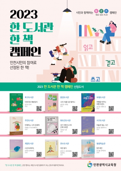 인천시교육청 관계자는 “시민과 함께하는 2023 ‘한 도서관 한 책 캠페인’을 통해 독서를 기반으로 한 ‘읽·걷·쓰’ 문화가 확산되기를 바란다”고 말했다.