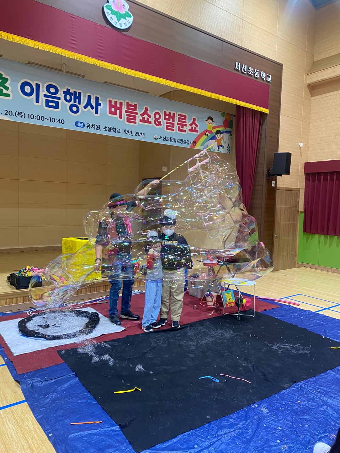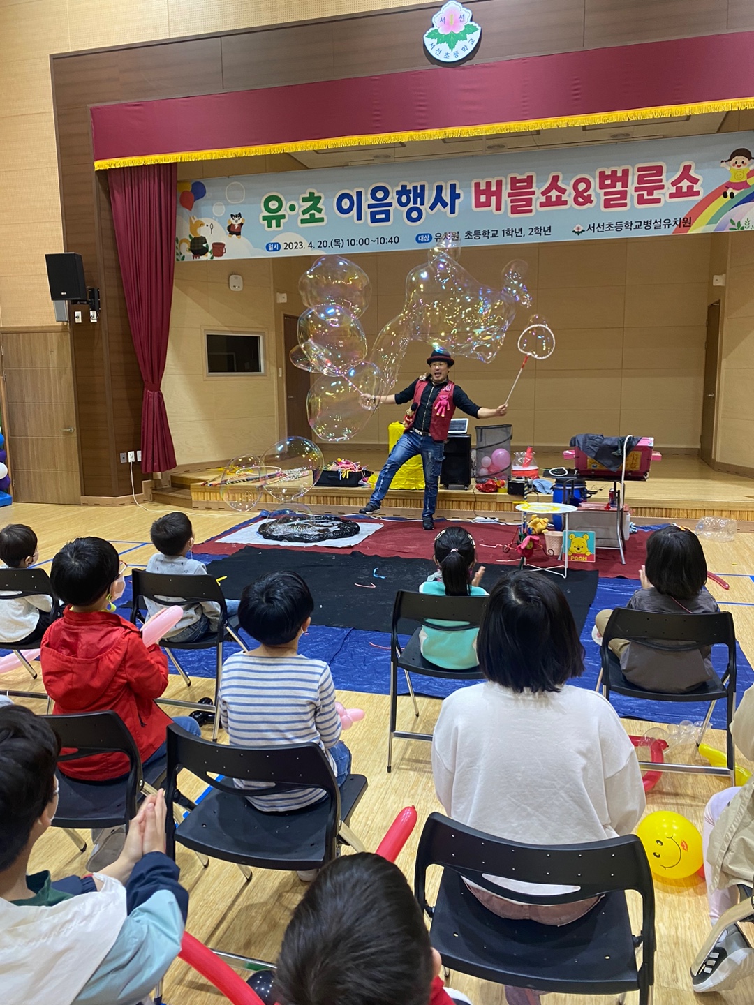 □ 서선초등학교병설유치원(원장 박현숙)은 유아(6명), 초등학교 1학년(5명), 초등학교 2학년(11명)을 대상으로 2023년 4월 20일(목) 유・초 이음교육의 일환으로 버블쇼&벌룬쇼 행사를 함께 실시하였다.