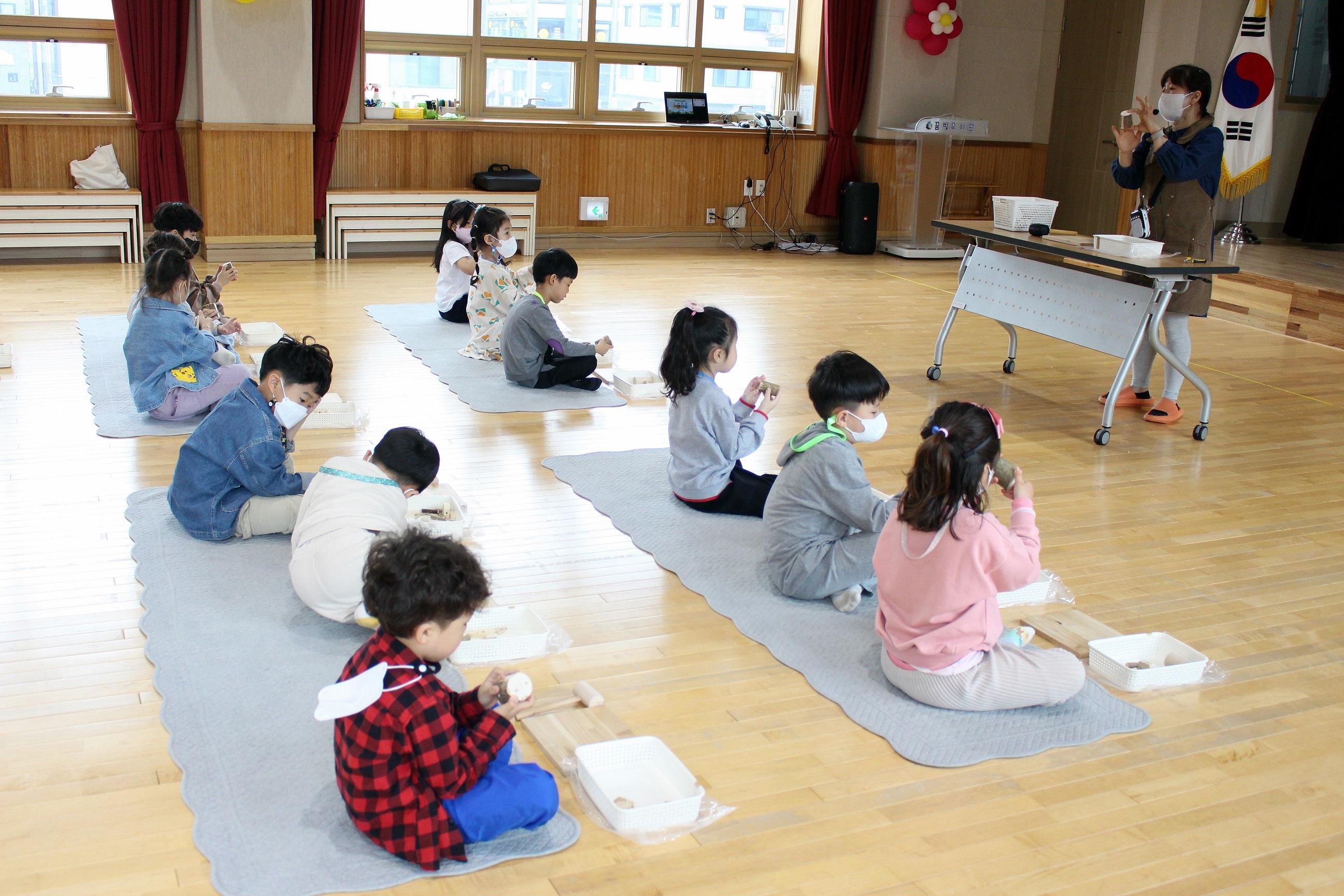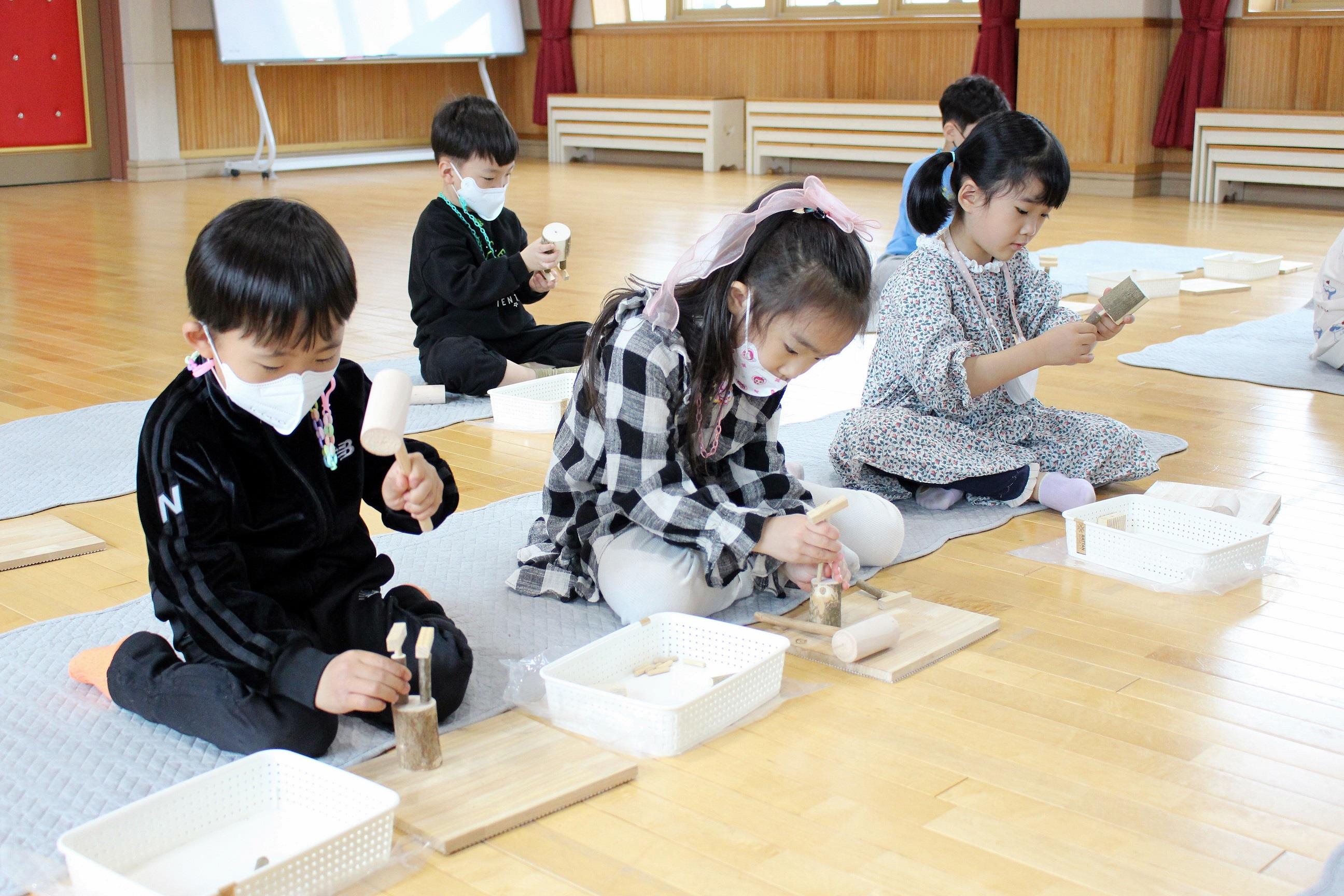 □ 꿈빛유치원(원장 김희숙)은 4월 24일(월)에 유아 121명(7학급)을 대상으로 유치원 강당에서 각 반별로 자연 목공교실 체험을 진행하였다.