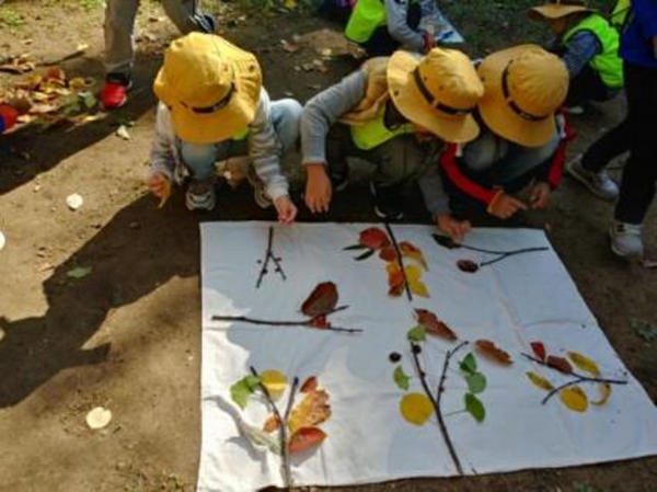 유아숲지도사가 아동의 눈높이에 맞춰 프로그램을 진행한다.