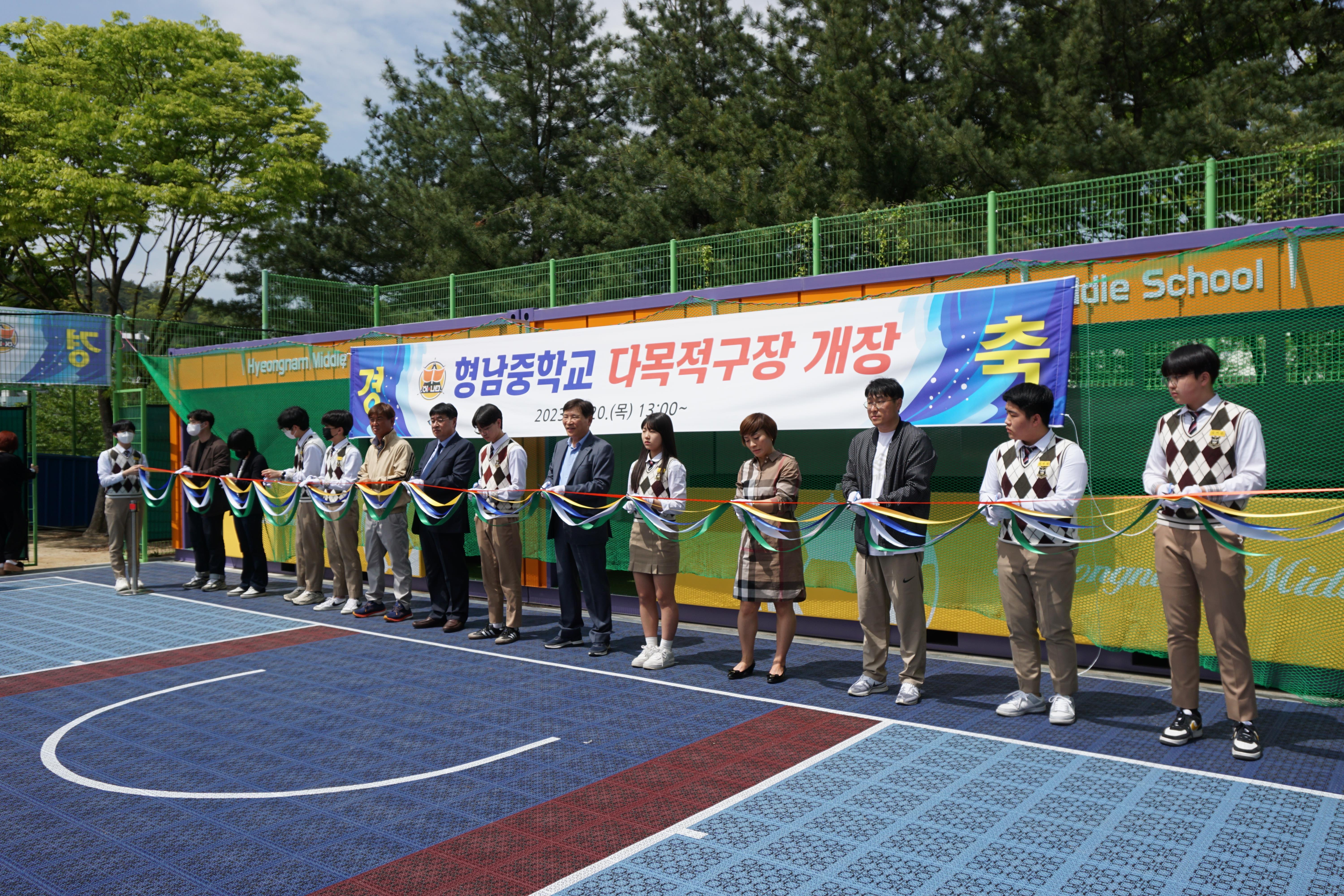 □ 형남중학교(교장 이창희)는 4월 20일 다목적구장 개장식을 가졌다. 이날 행사에는 학교운영위원장을 비롯하여 내빈과 학생, 학부모, 교직원 등 50여명이 참석한 가운데 테이프 커팅식과 함께 다목적 구장을 개장하였다.