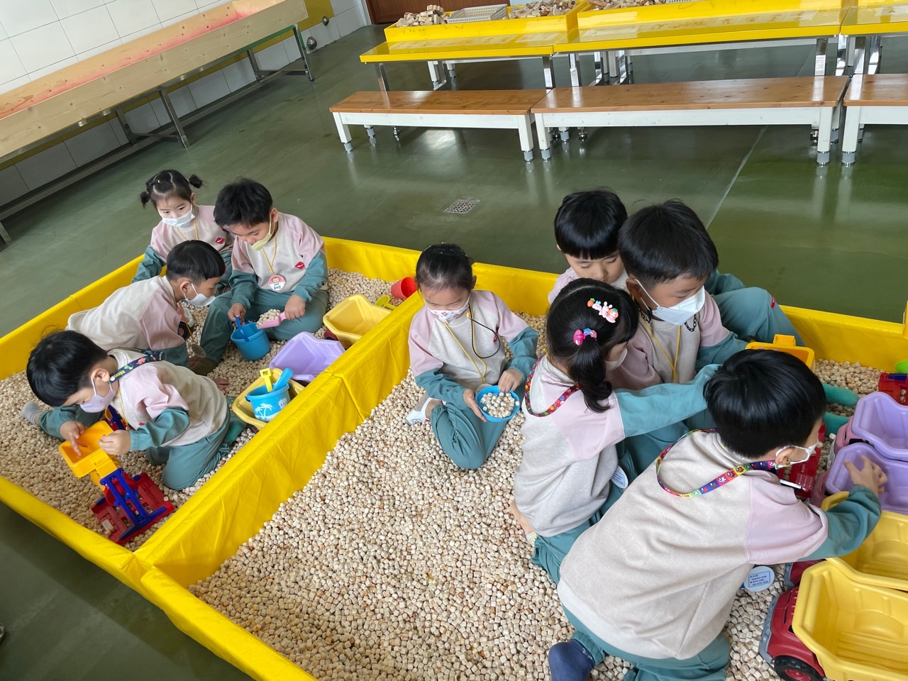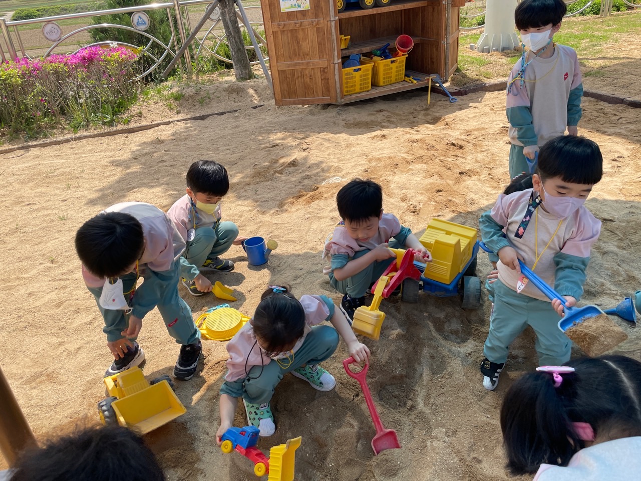 ▣ 유아들이 한 놀이체험으로는 편백나무 모래놀이, 목심 블럭 놀이, 다양한 역할놀이, 스티커 사진 찍기, 실내 놀이터, 실외 바깥놀이 및 퀵보드 타기 등이 있었다.