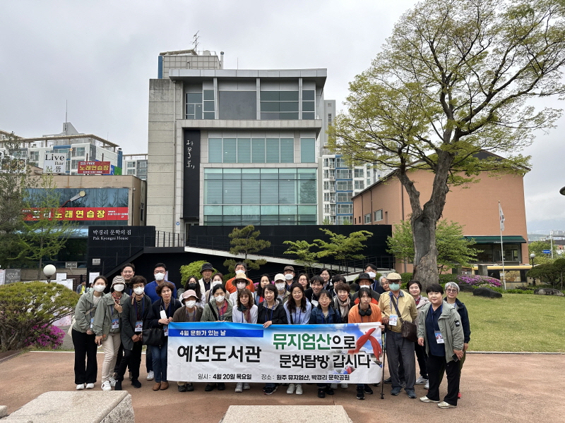 경상북도교육청 예천도서관(관장 김정연)은 4월 문화가 있는 날 특별행사로 20일 지역주민 40명과 강원도 원주의 박경리 문학공원과 뮤지엄 산으로 문화탐방을 다녀와 대성황을 이뤘다.