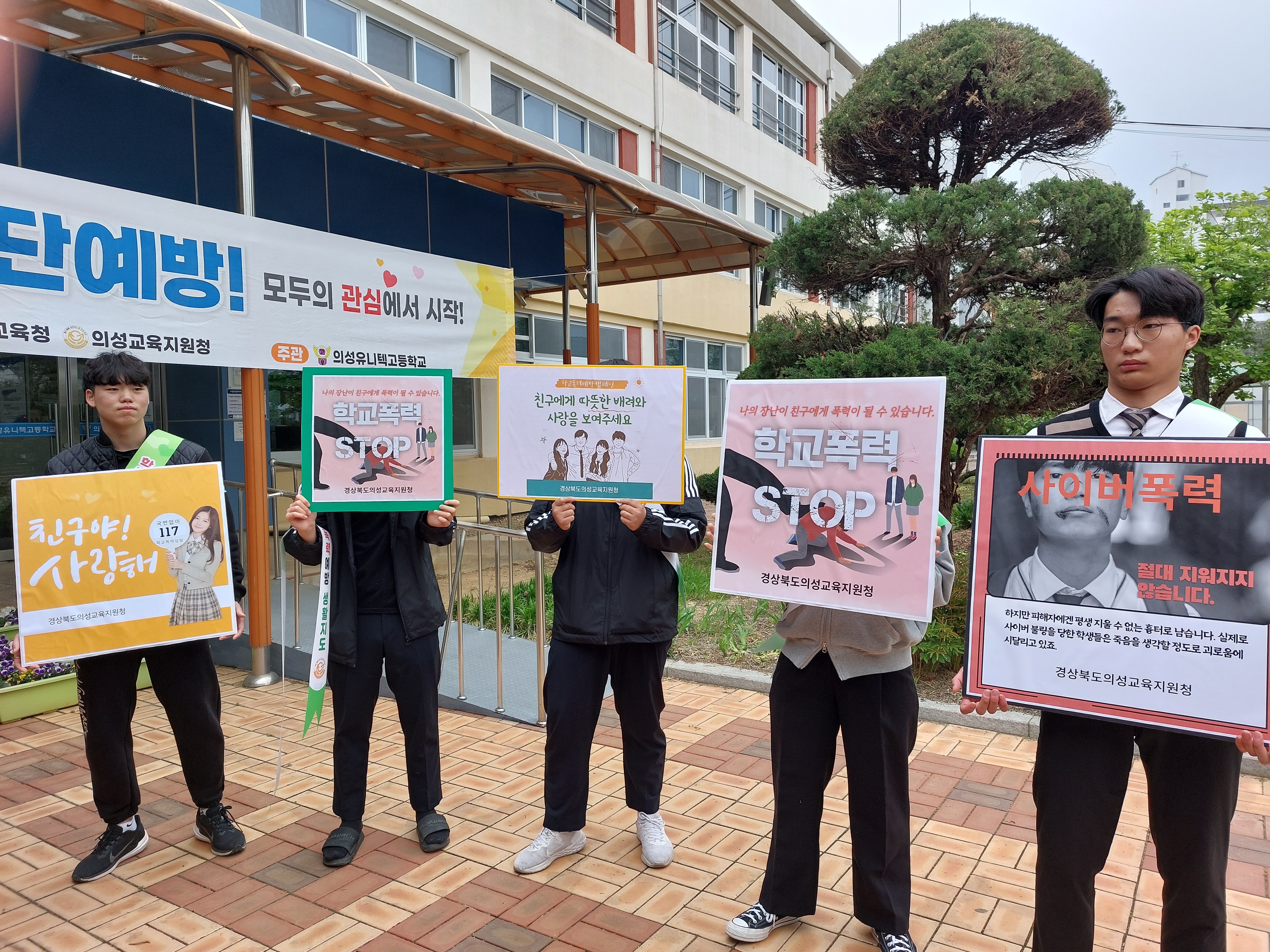 □ 경상북도의성교육지원청(교육장 김성완)은 4월 25일(화) 07시 50분부터 의성유니텍고등학교에서 의성유니텍고등학교 학생자치회와 함께 2023학년도 학교폭력예방 캠페인을 실시하였다.