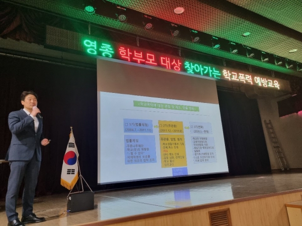 연수는 지난달 학부모 총회 기간 실시한 ‘찾아가는 학교폭력예방교육’ 이후 영종지역 학부모의 요청을 받아 추가로 마련했다.
