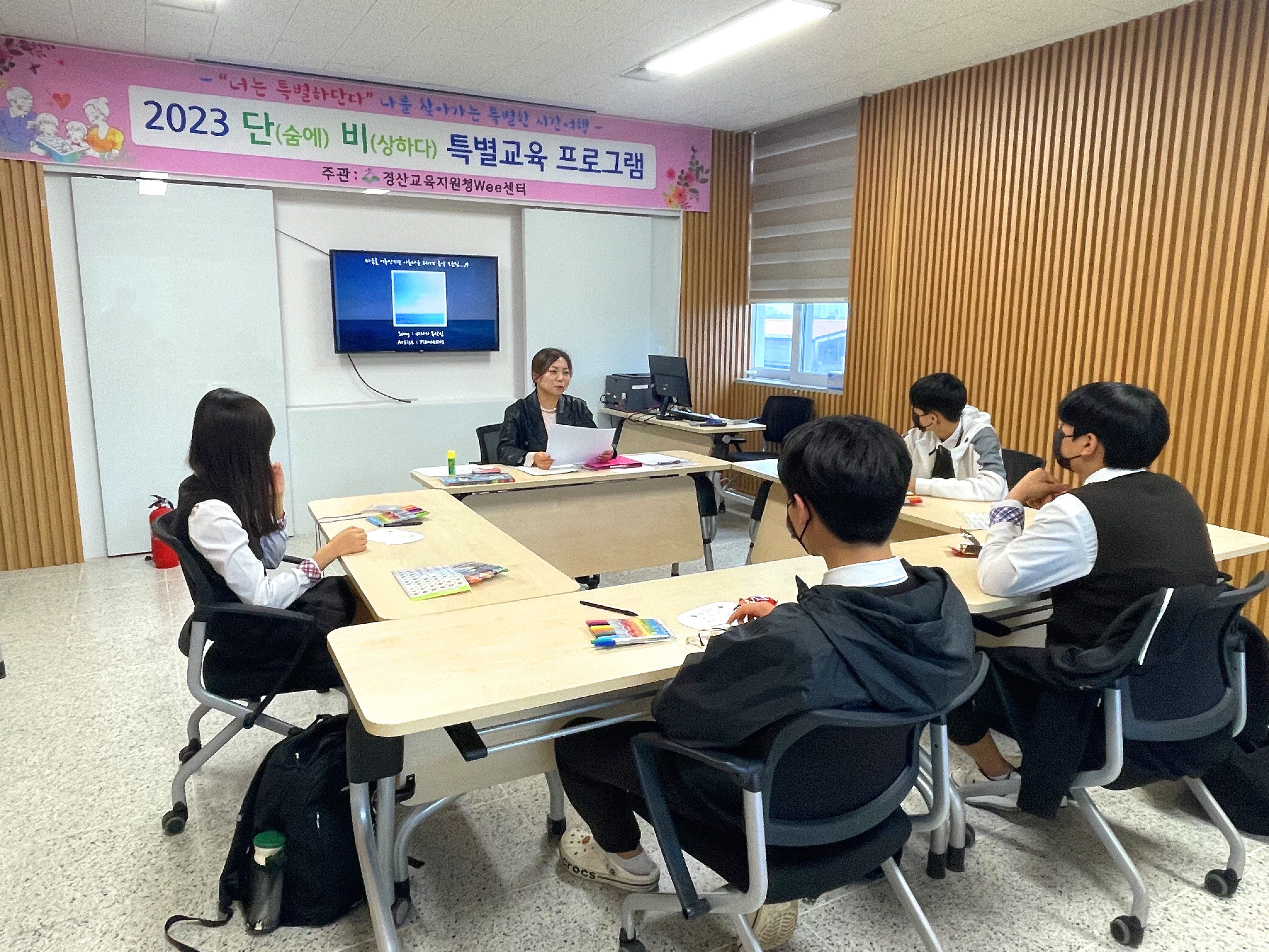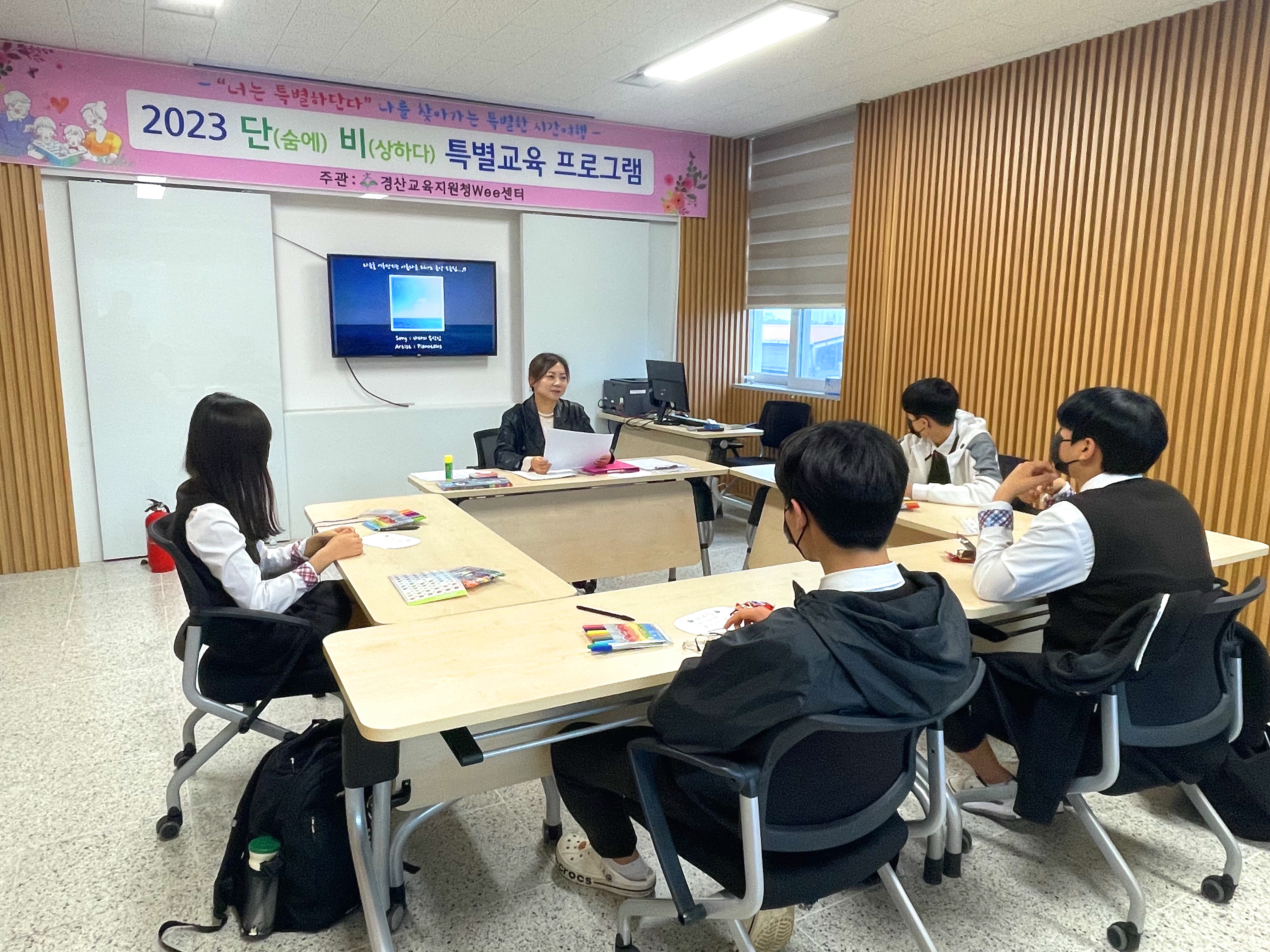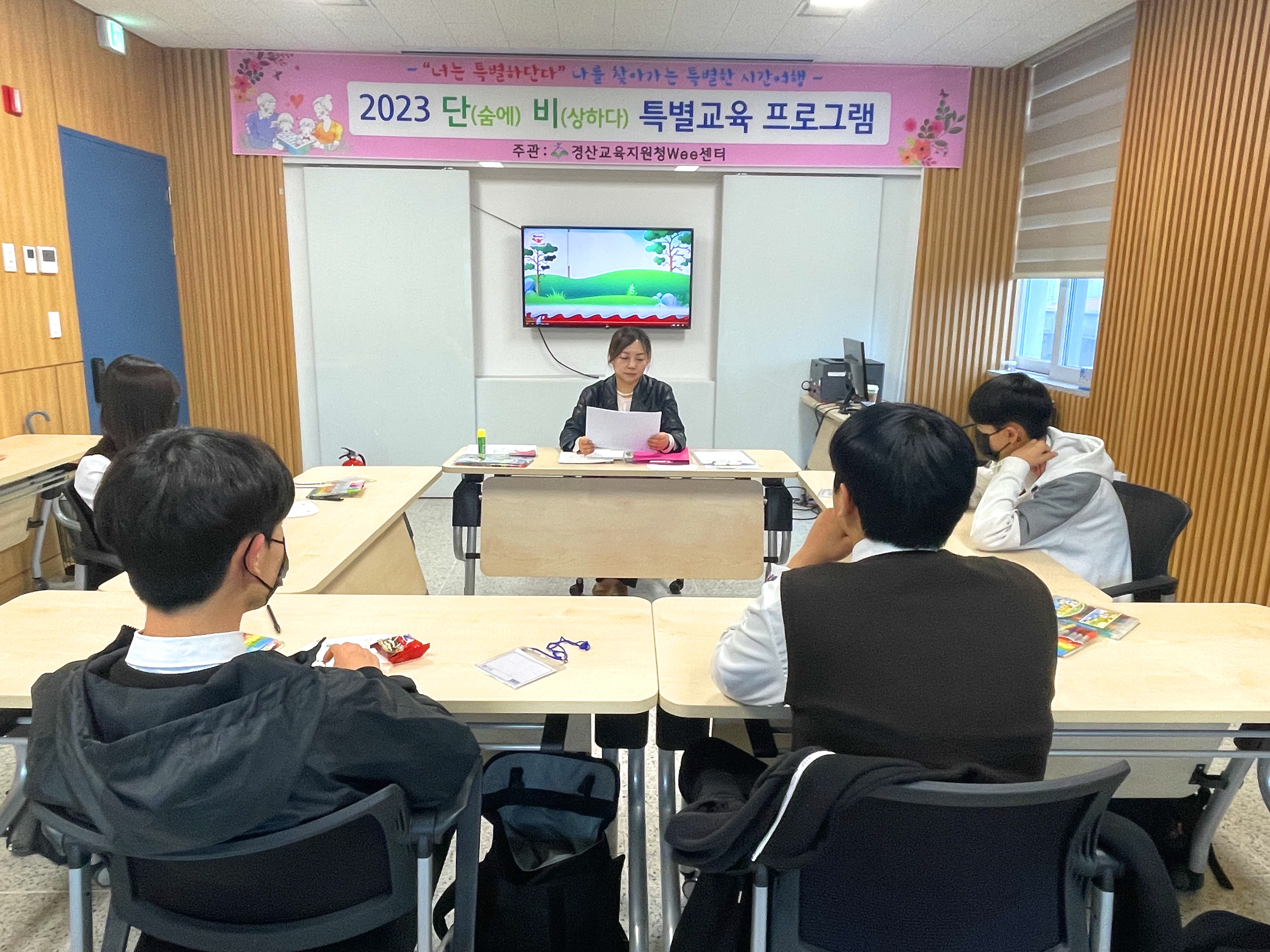 □ 경상북도경산교육지원청(교육장 이양균)은 2023년 4월 25일(화)부터 27(목)까지 3일간 경산Wee센터에서는 학교 선도위원회에서 특별교육 이수 처분을 받은 관내 중학생을 대상으로 선도교육을 위한‘단(숨에)비(상하다) 특별교육프로그램’을 진행하였다.