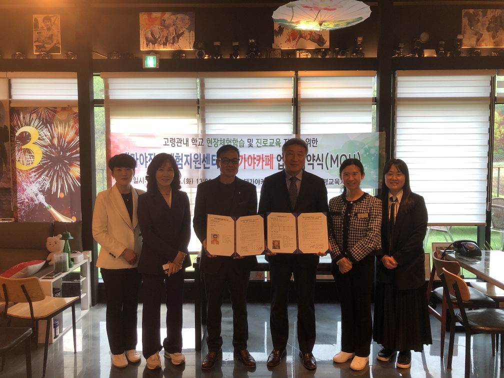 경상북도고령교육지원청(교육장 기세원)은 4월 25일(화)에 대가야진로체험지원센터와 대가야카페 대표가 참석한 가운데 업무협약(MOU)을 체결하였다.