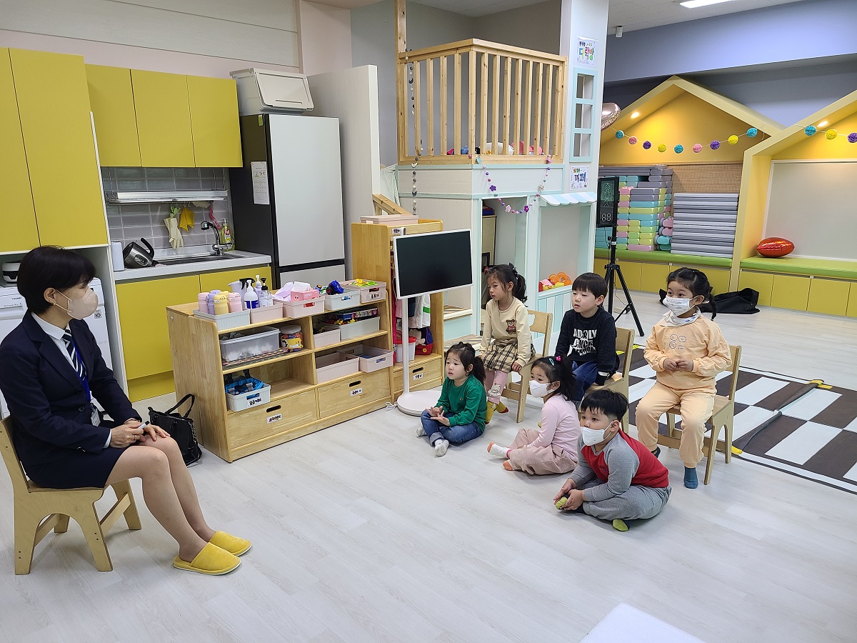 □ 찾아오는 어린이 교통안전교육은 경북교통문화연수원의 강사를 초청하여 이론교육과 실습교육을 통해 이루어졌다. 이론교육에서는 여러 가지 횡단보도의 형태, 길 건너는 방법, 운전자의 특성과 교통사고의 위험성, 안전한 보행법 등을 알아보며 유아 스스로 자신의 몸을 지킬 수 있는 인식과 역량을 기르는 시간을 가졌다.