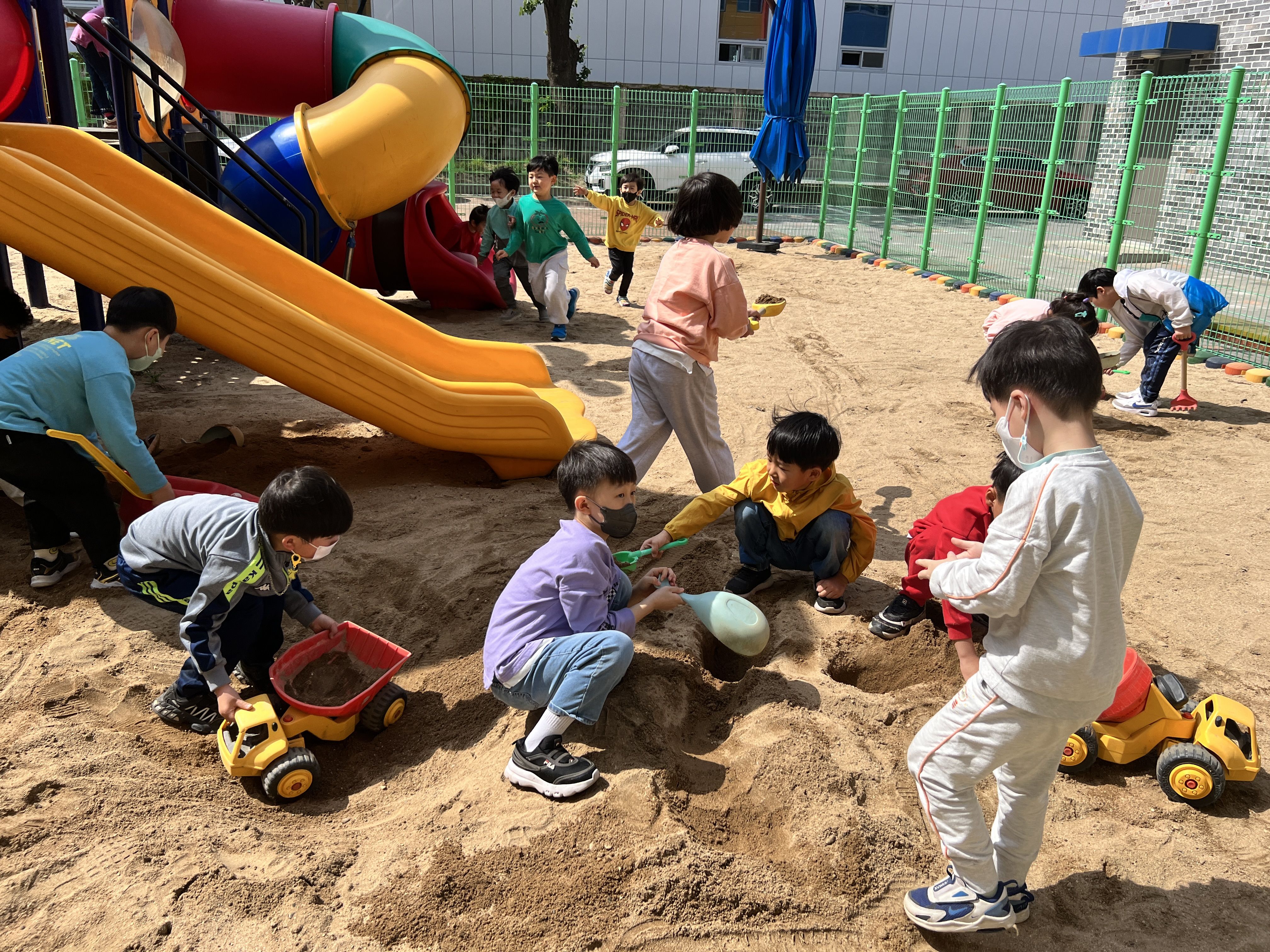 식물이 잘 자라주기를 바라는 마음으로 유치원 선생님과 1학년 선생님이 함께 듬뿍 물을 주기도 하였다. 모종을 다 심은 친구들은 옆 모래놀이터에서 함께 신나게 뛰어놀며 친해지는 시간을 가졌다.