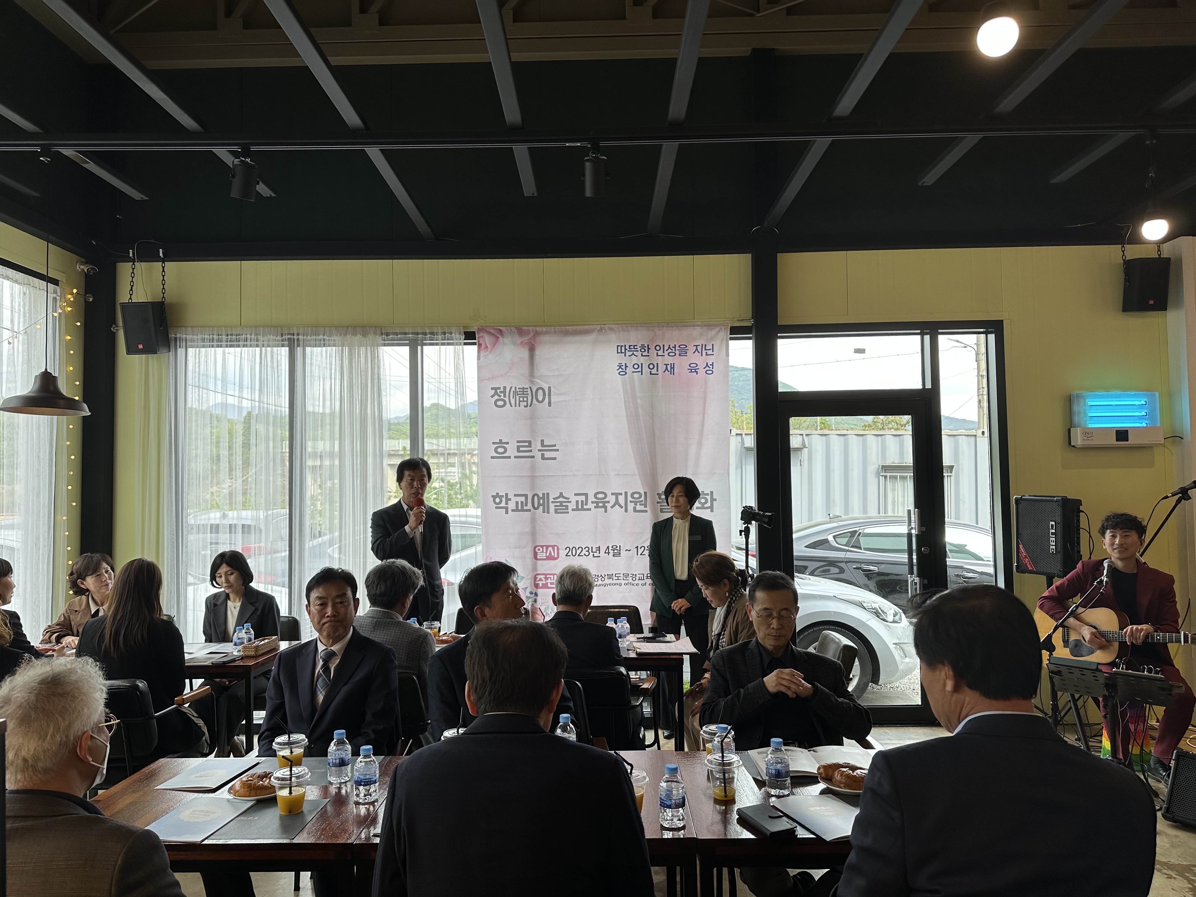 □ 문경교육지원청 교육지원과장 오홍현은“창의융합의 실력을 가진 따뜻한 공감력을 지닌 인재양성을 위해 문경교육지원청은 다각도로 학교 문화예술교육을 지원할 에정이다.”라고 말했다.