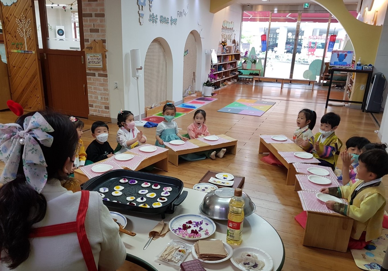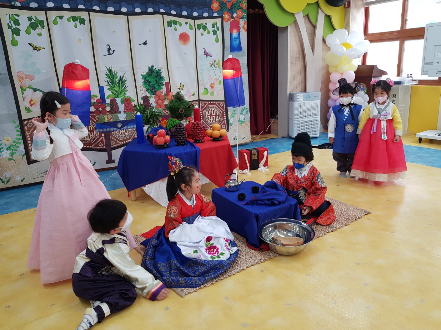 □ 전통문화체험주간 중 4월 24일(월)부터 27일(목)까지 4일간은 유아들이 한복을 입고 등원을 하여 전통 놀이를 경험한다.