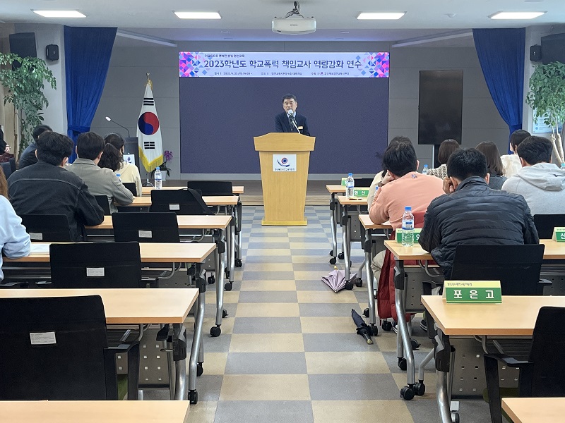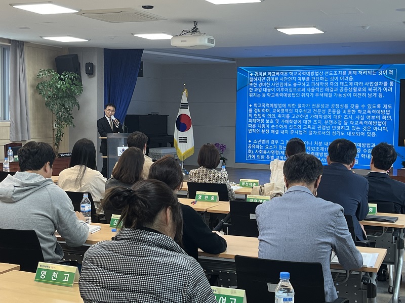 □ 영천교육지원청(교육장 주원영)은 2023년 4월 25일(화) 관내 전체 학교의 학교폭력 책임교사를 대상으로 4층 대회의실에서 “학교폭력 Zero” 실현을 위한 「학교폭력 책임교사 역량 강화 연수」를 실시하였다.