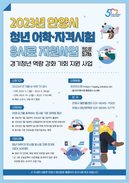 안양시, 미취업 청년 어학·자격시험 응시료 지원…연 최대 30만원