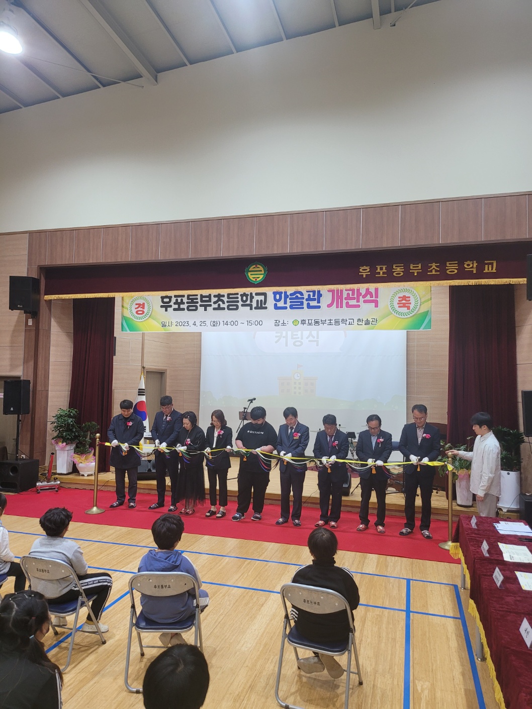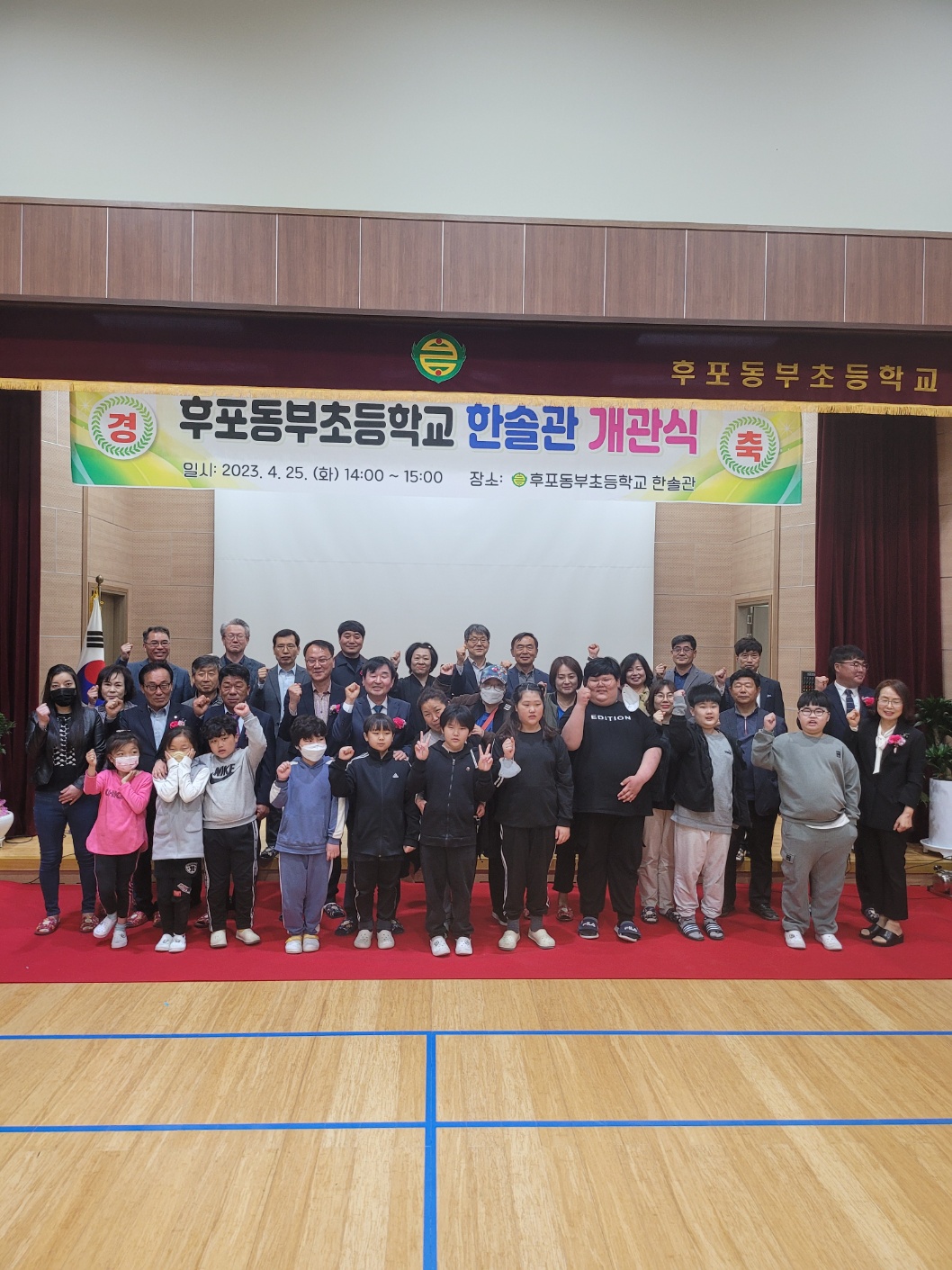 □ 후포동부초등학교(교장 임경숙)는 2023년 4월 25일(화)에 그동안 후포동부 교육 발전을 위해 노력하신 수많은 분들의 염원이 담긴 다목적강당 ‘한솔관’ 개관식을 거행했다.