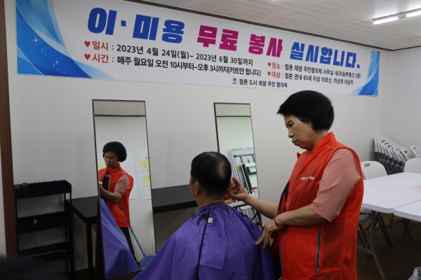 이번 미용 봉사를 받은 점촌 주민은 “그동안 거동이 어렵고 비용부담이 있어 미용실 가기가 힘들었는데, 미용 봉사를 통해 편하게 머리를 다듬을 수 있어서 주민협의체분들께 고맙다”고 말했다.