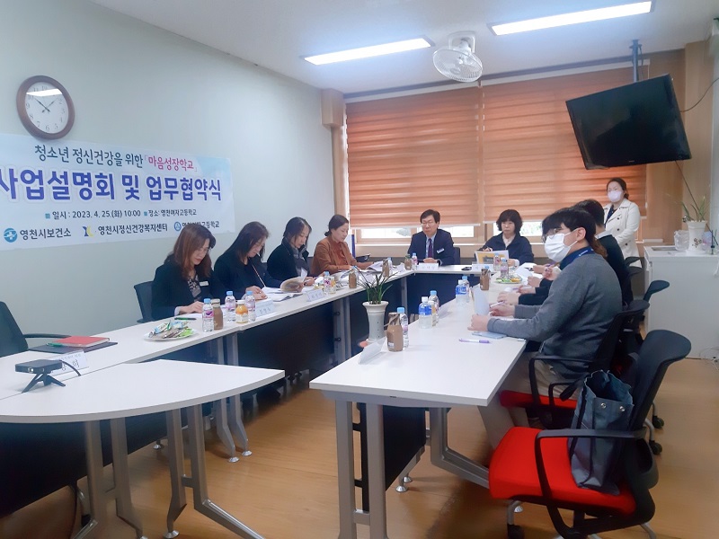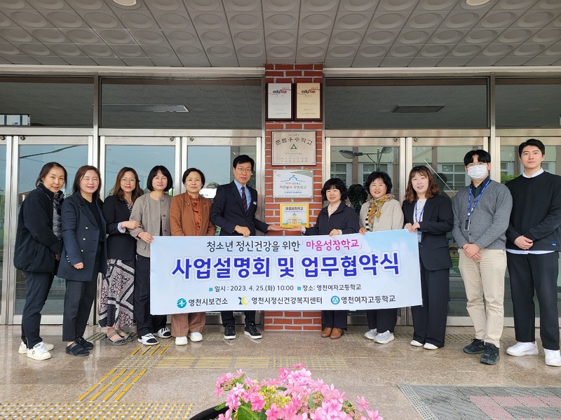 □ 영천여자고등학교(교장 신덕섭)는 4월 25일(화) 학생들이 정서적으로 건강하게 성장할 수 있도록 경상북도교육청이 주관하고 영천시정신건강복지센터가 진행하는 마음성장학교 운영에 앞서, 현판식과 위기관리 업무협약식(MOU)을 체결하였다.
